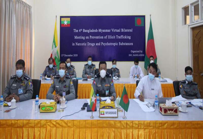 (၄)ကြိမ်မြောက် မြန်မာ−ဘင်္ဂလားဒေ့ရှ် နှစ်နိုင်ငံ မူးယစ်ဆေးဝါးပူးပေါင်းထိန်းချုပ်ရေး ညွှန်ကြားရေးမှူးချုပ်အဆင့် အစည်းအဝေးကို ယနေ့နံနက် ၁၀ နာရီခွဲတွင် ဘင်္ဂလားဒေ့ရှ်နိုင်ငံ က အိမ်ရှင်အဖြစ် ဗီဒီယိုကွန်ဖရင့်စနစ်ဖြင့် ကျင်းပသည်။