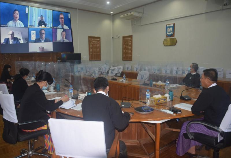 ကိုဗစ်-၁၉ ကာကွယ်ဆေး ပေါ်ပေါက် ရရှိပါက စနစ်တကျ ထိုးနှံပေးနိုင်ရေး ကြိုတင် ပြင်ဆင်ထားရှိမှု ဗဟိုအဆင့် အစည်းအဝေးကို နံနက်ပိုင်းတွင် ဗီဒီယိုကွင်ဖရင့်စနစ်ဖြင့် ကျင်းပသည်။
