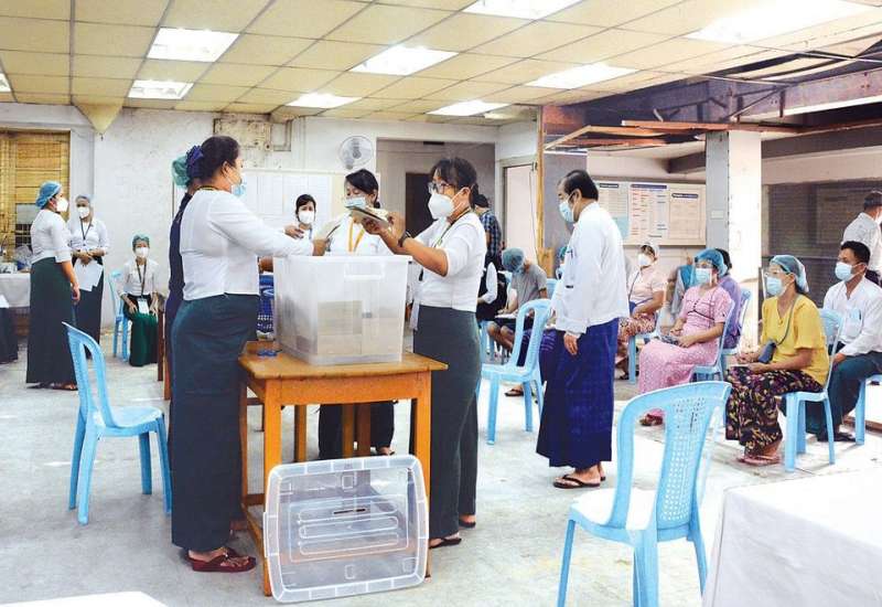 ယနေ့ကျင်းပသည့် ၂၀၂၀ ပြည့်နှစ် ပါတီစုံ ဒီမိုကရေစီအထွေထွေရွေးကောက်ပွဲနေ့တွင် ရန်ကုန်တိုင်းဒေသကြီး အတွင်း မြို့နယ်များရှိ မဲရုံအသီးသီးတွင် နံနက် ၆ နာရီ မဲရုံစတင် မဖွင့်မီကတည်းက မိမိတို့နိုင်ငံသား အခွင့်အ ရေး အတွက် မဲပေးလိုသူပြည်သူများ စောင့်ဆိုင်းနေကြသကဲ့သို့ မဲရုံအသီးသီးတွင် တာဝန် ထမ်းရွက်ကြမည့် မဲရုံမှူးအပါအဝင် အဖွဲ့ဝင်များသည်လည်း ကျရာကဏ္ဍမှ တာဝန်ထမ်းဆောင်ရန် အသင့်ရှိနေကြသည်။