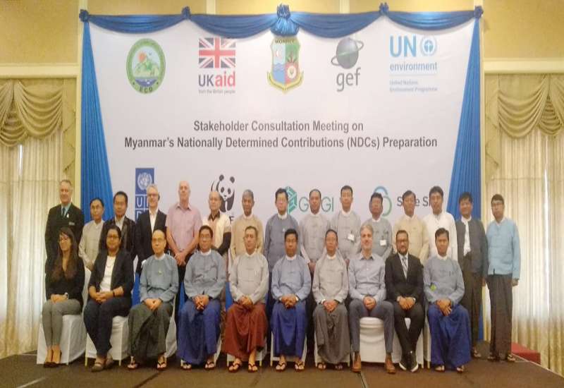 မြန်မာနိုင်ငံ အမျိုးသားအဆင့် ရာသီဥတုပြောင်းလဲမှု လျှော့ချရေးနှင့် လိုက်လျောညီထွေ ရှိစေရေး ဆိုင်ရာ အကောင်အထည်ဖော်ဆောင်ရွက်မည့် လုပ်ငန်းအစီအစဉ် ပြုစုရေးဆွဲရေး ဆိုင်ရာ ဆက်စပ် ပတ်သက်သူများ ညှိနှိုင်းအစည်းအဝေးကို ယနေ့ နံနက် ၉ နာရီအချိန်တွင် နေပြည်တော်ရှိ Grand Amara ဟိုတယ်၌ ကျင်းပခဲ့သည်။