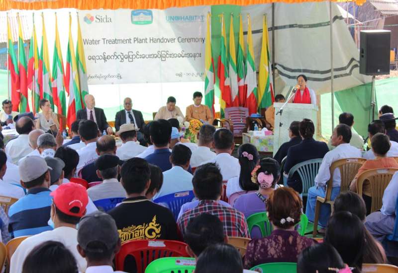 ရန်ကုန်တိုင်းဒေသကြီး ဒလမြို့နယ်၌ ဒေသခံပြည်သူများ နှစ်စဉ်နွေရာသီကာလအတွင်း ရေရှားပါးမှုမှ ကင်းဝေးစေရေးနှင့် သောက်သုံးရေ ရရှိစေရေးအတွက် ရည်ရွယ်၍  ဆွီဒင်နိုင်ငံ Swedish International Development Agency (SIDA) ၏ ထောက်ပံ့လှူဒါန်းငွေဖြင့်  UN-Habitat  နှင့် ရန်ကုန်မြို့တော်စည်ပင်သာယာရေး ကော်မတီတို့ပူးပေါင်း အကောင်အထည်ဖော် ဆောင်ရွက်သည့် ရေသန့်စက်ရုံသစ် ဖွင့်ပွဲအခမ်းအနားကို ယမန်နေ့ နံနက် ၉ နာရီက ဒလမြို့နယ် မှော်စက်ရပ်ကွက် ပုလဲလမ်းရှိ အဆိုပါ ရေသန့်စက်ရုံသစ်ရှေ့တွင် ကျင်းပခဲ့သည်။