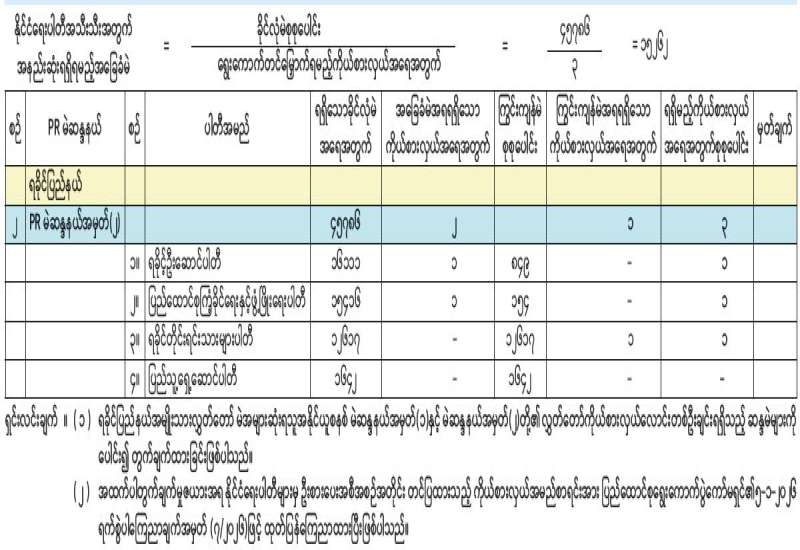 အမျိုးသားလွှတ်တော် (အချိုးကျကိုယ်စားပြုစနစ်)၊ ရခိုင်ပြည်နယ်မဲဆန္ဒနယ်အမှတ် (၂) နိုင်ငံရေးပါတီများ၏ ကိုယ်စားလှယ်လောင်းရရှိမှုအခြေအနေ