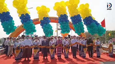 နိုင်ငံတော်စီမံအုပ်ချုပ်ရေးကောင်စီဝင် ဒေါ်အေးနုစိန်နှင့် ဦးမောင်းဟာတို့မှ (၇၇) နှစ်မြောက် တပ်မတော်နေ့ကို ကြိုဆိုဂုဏ်ပြုသောအားဖြင့် ကျွန်းကုန်းတံတားသစ်အား ဖဲကြိုးဖြတ်ဖွင့်လှစ်ပေး