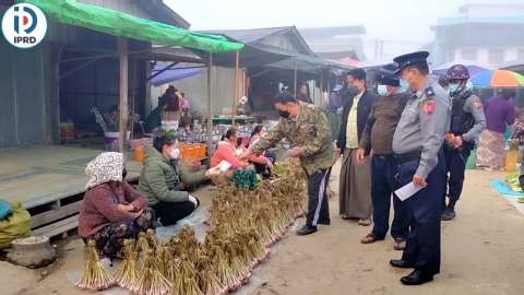 မိုင်းယောင်း၌ မြို့မစျေးတွင် ပြည်သူများ ပုံမှန်စျေးရောင်း၊ စျေးဝယ်ခြင်းကို ကြည့်ရှုစစ်ဆေ