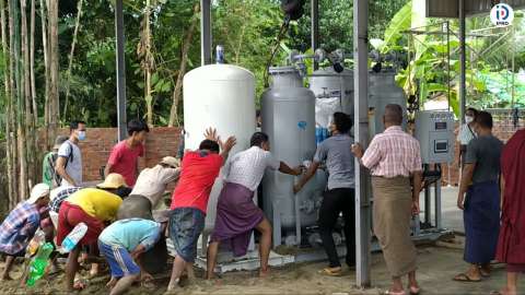 လှည်းကူးမြို့နယ်အတွင်းရှိသံဃာတော်များနှင့် အလှူရှင်များ စုပေါင်းဝယ်ယူလှူဒါန်းသော အောက်ဆီဂျင်စက်သစ်ရောက်ရှိ