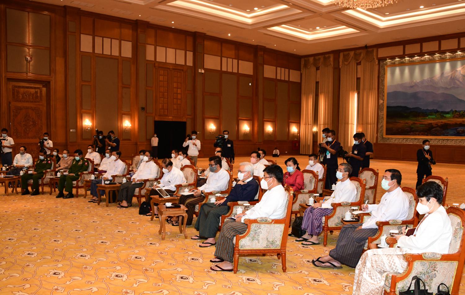 နိုင်ငံတော်စီမံအုပ်ချုပ်ရေးကောင်စီဥက္ကဋ္ဌ၊ တပ်မတော်ကာကွယ်ရေးဦးစီးချုပ် ဗိုလ်ချုပ်မှူးကြီး မင်းအောင်လှိုင် မြန်မာနိုင်ငံဘဏ်များအသင်း နာယက၊ ဥက္ကဋ္ဌနှင့် တာဝန်ရှိသူများ၊ ပုဂ္ဂလိက ဘဏ်များမှ ဥက္ကဋ္ဌများ၊ ဒုတိယဥက္ကဋ္ဌများ၊ တာဝန်ရှိသူများနှင့်တွေ့ဆုံ
