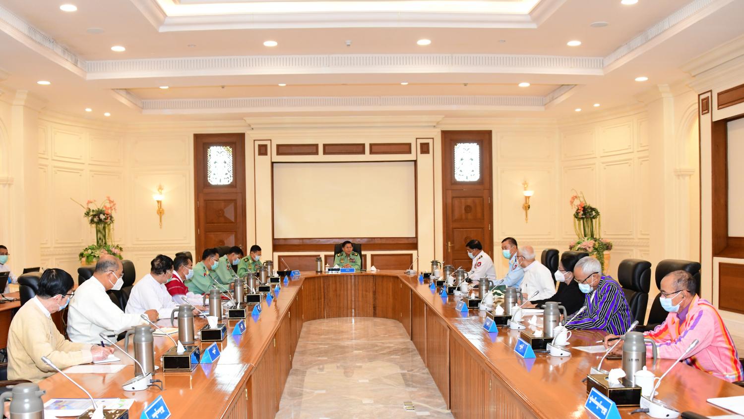 နိုင်ငံတော်စီမံအုပ်ချုပ်ရေး ကောင်စီဥက္ကဋ္ဌ၊ တပ်မတော်ကာကွယ်ရေးဦးစီးချုပ် ဗိုလ်ချုပ်မှူးကြီး မင်းအောင်လှိုင်သည် ယနေ့နံနက် ပိုင်းတွင် နေပြည်တော်ရှိ နိုင်ငံတော် စီမံအုပ်ချုပ်ရေးကောင်စီ ဥက္ကဋ္ဌရုံး အစည်းအဝေးခန်းမ၌ နိုင်ငံတော်စီမံအုပ်ချုပ်ရေး ကောင်စီ အဖွဲ့ဝင်များအားတွေ့ဆုံပြီး နိုင်ငံရေး၊ စီးပွားရေး၊လူမူရေး၊ အုပ်ချုပ်ရေး၊ ငြိမ်းချမ်းရေး၊ တရားဥပဒေ စိုးမိုးရေးတို့နှင့် စပ်လျဉ်း၍ ရှင်းလင်းပြောကြားသည်။