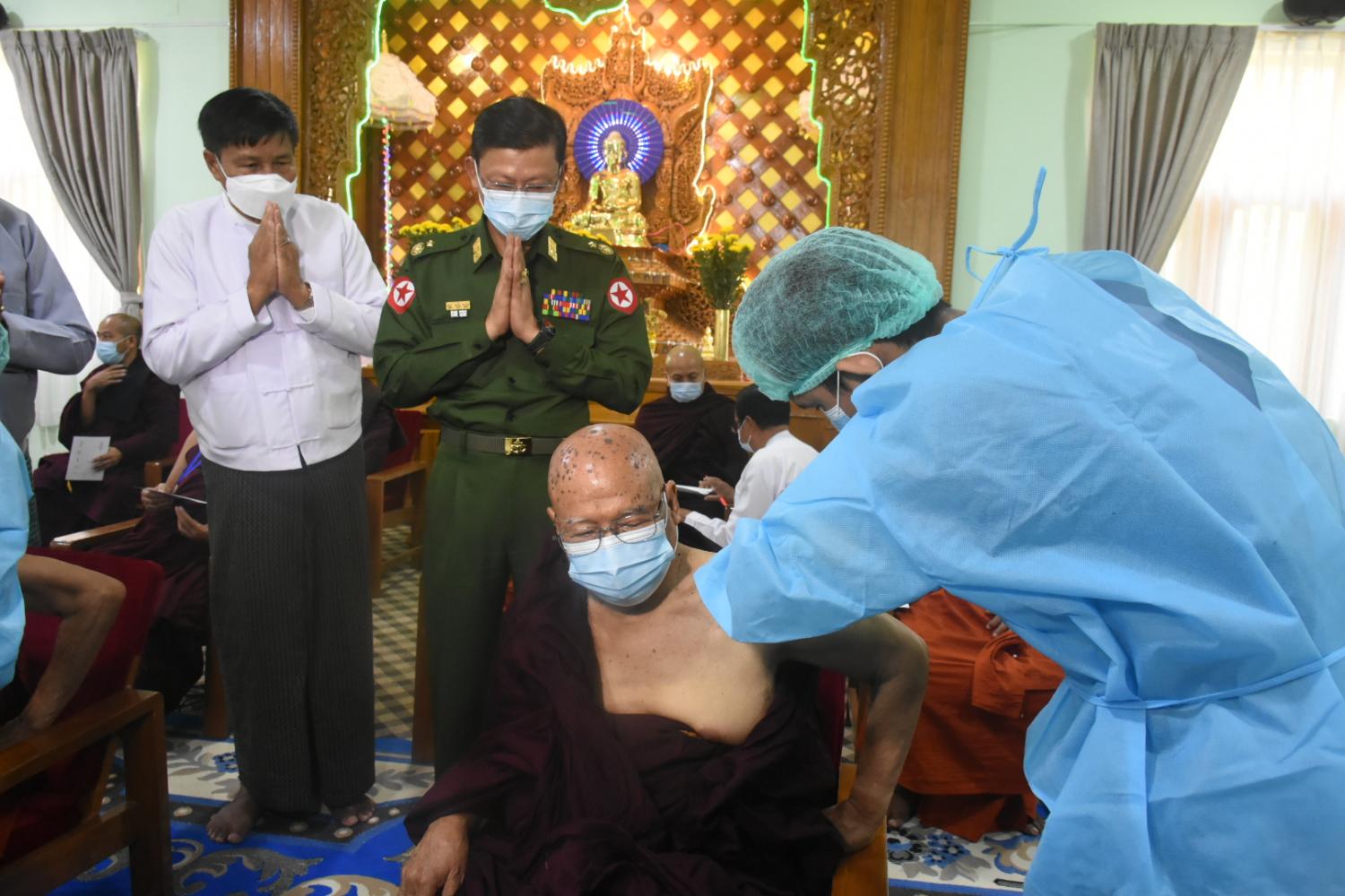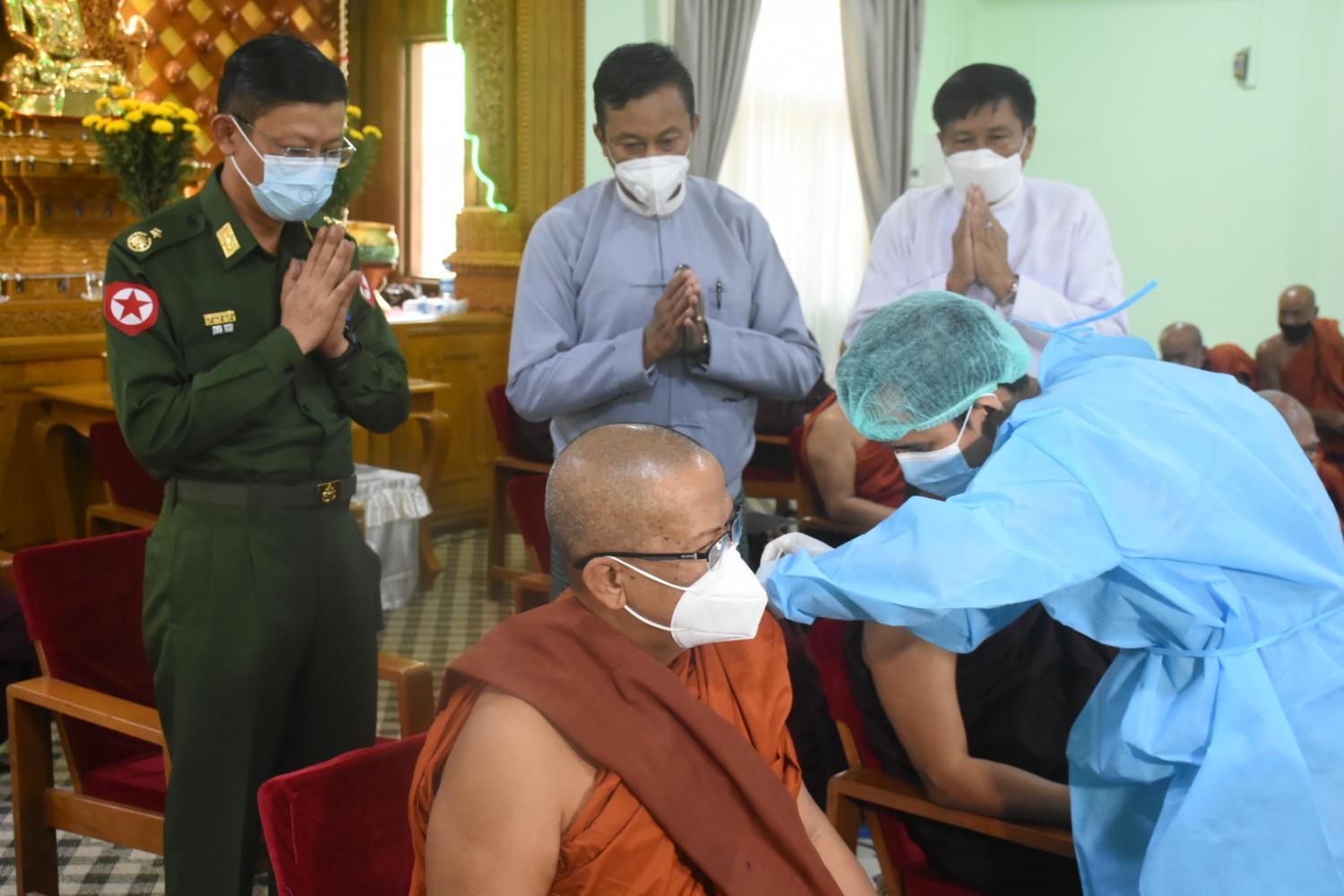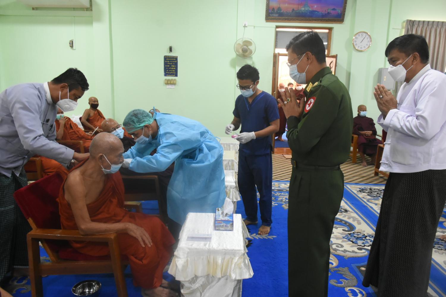 နိုင်ငံတော်သံဃမဟာနာယကအဖွဲ့ဥက္ကဋ္ဌ ဗန်းမော်ကျောင်းတိုက်ဆရာတော်နှင့် ထေရ်ကြီးဝါကြီး ဆရာတော်ကြီးများအား COVID - 19 ရောဂါကာကွယ်ဆေး ဒုတိယအကြိမ်ထိုးနှံပေး