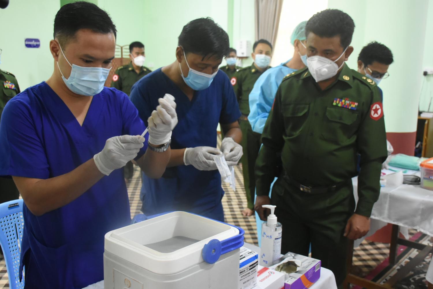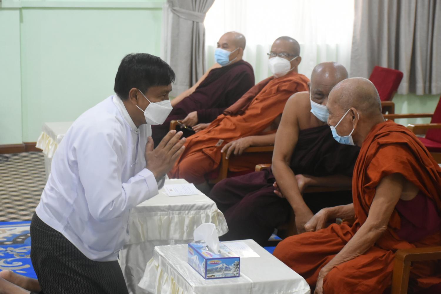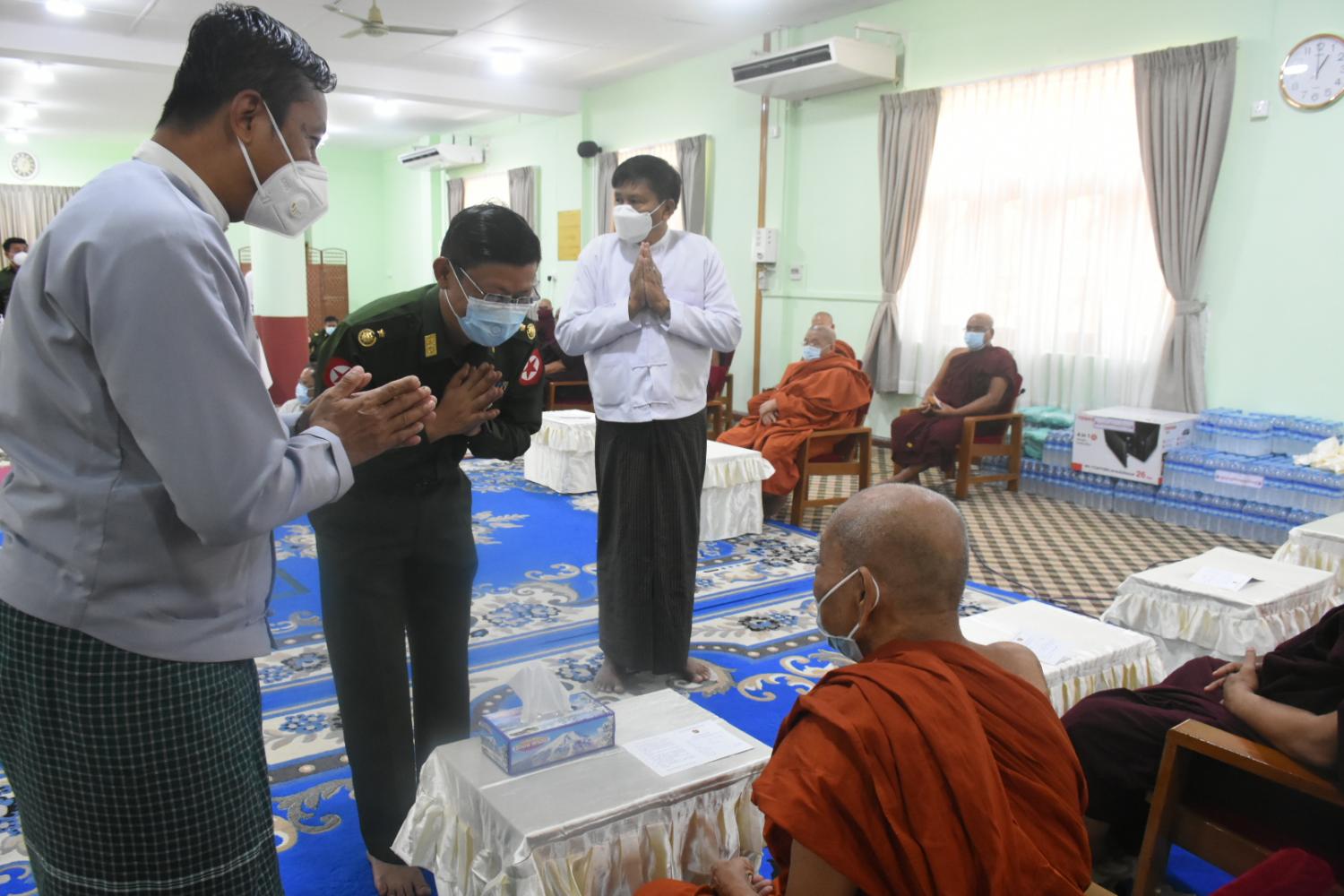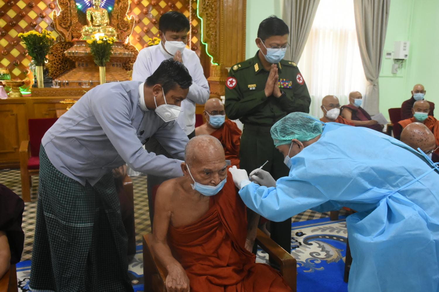 နိုင်ငံတော်သံဃမဟာနာယကအဖွဲ့ဥက္ကဋ္ဌ ဗန်းမော်ကျောင်းတိုက်ဆရာတော်နှင့် ထေရ်ကြီးဝါကြီး ဆရာတော်ကြီးများအား COVID - 19 ရောဂါကာကွယ်ဆေး ဒုတိယအကြိမ်ထိုးနှံပေး