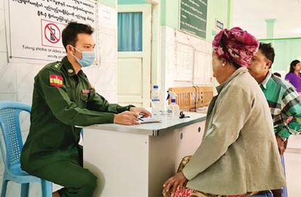 တိုင်းဒေသကြီးနှင့်ပြည်နယ်များရှိ တိုင်းရင်းသား ပြည်သူများအတွက် တပ်မတော်ဆေးရုံများ နှင့် ယာယီကုသရေးဆေးရုံများ တွင် ကျန်းမာရေးစောင့်ရှောက်မှု များကို ဆောင်ရွက်ပေးလျက်ရှိရာ ဖေဖော်ဝါရီ၅ ရက်မှ ယနေ့အထိ ပြင်ပလူနာ ၈၆၇၅ဝ ဦး၊ အတွင်း လူနာ ၄၁၉၃ ဦးကို တပ်မတော်မှ ပါရဂူများ၊ ဆေးမှူးများ၊ သူနာပြု များဖြင့် ကျန်းမာရေး စစ်ဆေးပေး ခြင်း၊ ခွဲစိတ်ရန် လိုအပ်သည့်လူနာ များအား ခွဲစိတ်ပေးခြင်း၊ ဆေးရုံ တက်ရောက်ကုသရန် လိုအပ်သော လူနာများကို ဆေးရုံတင်ကာ ကျန်းမာရေးစောင့်ရှောက် ပေးခြင်းများဆောင်ရွက်ပေးသည့် အပြင် ဆေးရုံတက်လူနာများနှင့် လူနာစောင့်များ နေထိုင် စားသောက်ရေး အဆင်ပြေစေရန် အတွက်ကိုပါ စီမံဆောင်ရွက် ပေးသည်။ (ယာပုံ)