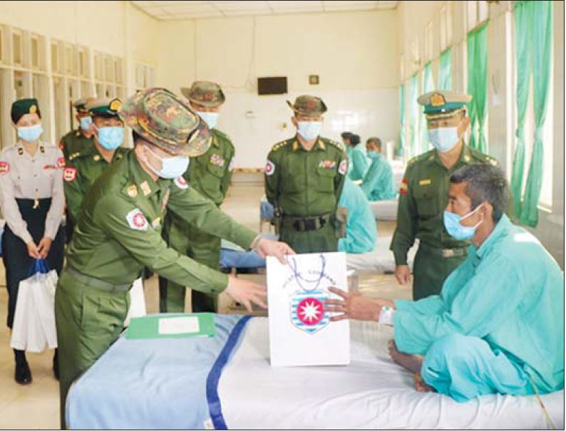နေပြည်တော် မတ် ၂၈ တိုင်းဒေသကြီးနှင့် ပြည်နယ်များရှိ တိုင်းရင်းသား ပြည်သူများအတွက် တပ်မတော်ဆေးရုံများနှင့် ယာယီကုသရေးဆေးရုံများတွင် ကျန်းမာရေးစောင့် ရှောက်မှုများကို ဆောင်ရွက်ပေးလျက်ရှိရာ ဖေဖော် ဝါရီ ၅ ရက်မှ ယနေ့အထိ ပြင်ပလူနာ ၁ဝဝ၈၇ ဦး၊ အတွင်းလူနာ ၄၁၉၁ ဦးကို တပ်မတော်မှ ပါရဂူများ၊ ဆေးမှူးများ၊ သူနာပြုများဖြင့် ကျန်းမာရေးစစ်ဆေး ပေးခြင်း၊ ခွဲစိတ်ရန်လိုအပ်သည့်လူနာများကို ခွဲစိတ် ပေးခြင်း၊ ဆေးရုံတက်ရောက် ကုသရန်လိုအပ်သော လူနာများကို ဆေးရုံတကာ ကျန်းမာရေးစောင့်ရှောက် ပေးခြင်းများ ဆောင်ရွက်ပေးသည့်အပြင် ဆေးရုံ တက်လူနာများနှင့် လူနာစောင့်များ နေထိုင်စားသောက်ရေး အဆင်ပြေစေရန်အတွက် ကိုပါ စီမံဆောင်ရွက်ပေးသည်။ ကလေးငယ် ၆၃၉၇ ဦး မွေးဖွားပေးနိုင်ခဲ့ ထိုသို့ လာရောက်ကုသမှု ခံယူလျက်ရှိသည့် လူနာများအနက် အကြီးစားခွဲစိတ်ကုသရန် လိုအပ်သူ ၄၇၂၄ ဦး၊ အသေးစားခွဲစိတ်ကုသရန် လိုအပ်သူ ၂၄၉၇ ဦး စုစုပေါင်း ၇၂၂၁ ဦးတို့ကို ခွဲစိတ် ကုသပေးနိုင်ခဲ့ပြီး စိုးရိမ်ဖွယ်ရာရှိသည့် လူနာများ ကိုလည်း ပါရဂူများ၊ ဆေးမှူးများဖြင့် အထူးကြပ်မတ် ကုသပေးလျက်ရှိသည်။ ၎င်းအပြင် ကလေးမီးဖွားရန် အခက်အခဲဖြစ်နေသည့် မွေးလူနာများကို တပ်မတော် ဆေးရုံအသီးသီးတွင် တက်ရောက်စေလျက်ရှိပြီး ၎င်းတို့အနက် ၂၅၃ဝကို ခွဲစိတ်မွေးဖွားပေးနိုင်ခဲ့ကာ ၃၈၆၇ ဦးကို သာမန်မွေးဖွားပေးနိုင်ခဲ့ခြင်းကြောင့် ယနေ့အထိ ကလေးငယ် ၆၃၉၇ ဦးကို အောင်မြင်စွာ မွေးဖွားပေးနိုင်ခဲ့သည်။ ချီးမြှင့်ငွေများ ပေးအပ် ယင်းသို့ဒေသခံပြည်သူများအား ဆေးကုသပေးနေမှု အခြေအနေများကို သက်ဆိုင်ရာ တိုင်းစစ်ဌာနချုပ်အသီးသီးမှ တာဝန်ရှိသူများက သွားရောက် ကြည့်ရှုအားပေးပြီး ဆေးရုံ၊ တက်ရောက်ကုသမှုခံ ယူနေသောလူနာများအတွက် စားသောက်ဖွယ်ရာများနှင့် ကျန်းမာရေး ဝန်ထမ်းများအတွက် ချီးမြှင့်ငွေများ ပေးအပ်ခဲ့ကြကြောင်း သတင်းရရှိသည်။ သတင်းစဉ်