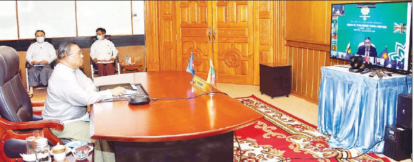 ပြည်ထောင်စုဝန်ကြီး ဦးဝဏ္ဏမောင်လွင်သည် ယနေ့မွန်းလွဲ ၁ နာရီခွဲတွင် video conferencing စနစ်ဖြင့် ကျင်းပပြုလုပ်သည့် ASEAN-UK Open-Ended Troika Dialogue သို့ နိုင်ငံခြားရေးဝန် ကြီးဌာန၊ နေပြည်တော်မှ ပါဝင်တက်ရောက်သည်။