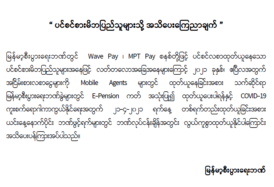 “ ပင်စင်စားမိဘပြည်သူများသို့ အသိပေးကြေညာချက် ”