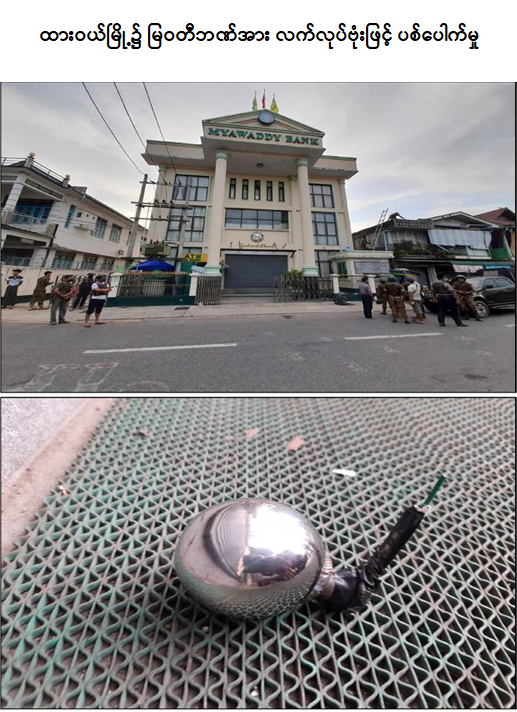 နေပြည်တော်၊ ဧပြီ ၁၆ ဆူပူအကြမ်းဖက်သူ လူအုပ်စုများအနေဖြင့် နိုင်ငံတော်အစိုးရ၏ အုပ်ချုပ်မှုယန္တရားနှင့် ရပ်ရွာ အေးချမ်းသာယာရေး၊ တရားဥပဒေစိုးမိုးရေး ပျက်ပြားစေရေးတို့အတွက် နောက်ကွယ် မှ ကြိုးကိုင်ခြယ်လှယ်နေသူများ၏ သွေးထိုးလှုံ့ဆော်မှုများဖြင့် အကြမ်းဖက်လုပ်ရပ်များ ပြုလုပ်လျက်ရှိရာတွင် အများပြည်သူလူထုအထိတ်တလန့်ဖြစ်စေရန်နှင့် တည်ငြိမ်အေးချမ်းမှု ပျက်ပြားစေရန်အတွက် အဖျက်အမှောင့်လုပ်ရပ်များကို လုပ်ဆောင်လျက်ရှိသည်ကို တွေ့ရှိရ သည်။ ထိုသို့လုပ်ဆောင်လျက်ရှိရာ ရန်ကုန်တိုင်းဒေသကြီး၊ အလုံမြို့နယ်၊ အလုံလမ်းရှိ ဌာနရပ်ကွက် စီမံအုပ်ချုပ်ရေးရုံးနေရာ၌ ဧပြီ ၁၅ ရက် ည ၇ နာရီ ၁၅ မိနစ်ခန့်တွင် ပေါက်ကွဲမှု တစ်ခုဖြစ်ပွားခဲ့ကြောင်း သတင်းအရ လုံခြုံရေးတပ်ဖွဲ့ဝင်များပါဝင်သော ပူးပေါင်းအဖွဲ့က သွားရောက်စစ်ဆေးရာ အဆိုပါနေရာ၌ PVC အပိုင်းအစများနှင့် ဘောစေ့များတွေ့ရှိရပြီး အဆိုပါ ပေါက်ကွဲမှုကြောင့် လူများထိခိုက်ဒဏ်ရာ ရရှိခြင်းမရှိကြောင်း သိရှိရသည်။ အလားတူ ယနေ့နံနက် ၅ နာရီတွင် လုံခြုံရေးတပ်ဖွဲ့ဝင်များသည် ထားဝယ်မြို့၊ ပိန္နဲတော ရပ်ကွက်၊ ရေးလမ်းရှိ မြဝတီဘဏ်ရှေ့၌ လုံခြုံရေးဆောင်ရွက်နေစဉ် ဥတ္တံားကြီးမီးပွိုင့်ဘက်မှ မောင်းနှင်လာသည့် Wave-100 ဆိုင်ကယ်ပေါ်မှ အကြမ်းဖက်သူ အမျိုးသား ၂ ဦး(စိစစ်ဆဲ)က လက်လုပ်ဗုံး ၂ လုံးဖြင့် ပစ်ပေါက်၍ ရေးလမ်းအတိုင်း မောင်းနှင်ထွက်ပြေးသွားခဲ့ရာ လက်လုပ်မိုင်း ၁ လုံးမှာ ဘဏ်ရှေ့သို့ ကျရောက်ပေါက်ကွဲခဲ့ပြီး ကျန် ၁ လုံးမှာ ပေါက်ကွဲမှု မရှိသဖြင့် လုံခြုံရေးတပ်ဖွဲ့ဝင်များမှ မပေါက်ကွဲသေးသည့် လက်လုပ်မိုင်း ၁ လုံးအား အများပြည်သူအန္တရာယ်မဖြစ်စေရေး စစ်မြေပြင် အင်ဂျင်နီယာတပ်ဖွဲ့ဝင်များမှ ရှင်းလင်းဖယ်ရှား ခဲ့ကြောင်း သိရှိရသည်။ ထို့အတူ စစ်ကိုင်းတိုင်းဒေသကြီး၊ ဒီပဲယင်းမြို့နယ်ရှိ မြို့နယ်စီမံအုပ်ချုပ်ရေး အဖွဲ့ရုံးသို့ ယနေ့နံနက် ၆ နာရီခွဲခန့်တွင် ဆူပူအကြမ်းဖက်သူတစ်ဦးက အသံဗုံး ၂ လုံးဖြင့် လာရောက် ပစ်ခတ်ထွက်ပြေးသဖြင့် လုံခြုံရေးတပ်ဖွဲ့ဝင်များက ရာဘာကျည်ဖြင့် ခြောက်လှန့်ပစ်ခတ် ဖမ်းဆီးခဲ့ကြောင်း သိရှိရသည်။ အဆိုပါမိုင်းပေါက်ကွဲမှုကြောင့် လူများထိခိုက်ဒဏ်ရာ ရရှိခြင်းမရှိကြောင်းနှင့် ရာဘာကျည်ထိမှန်ဒဏ်ရာရရှိခဲ့သည့် အကြမ်းဖက်သူကို နယ်မြေခံ တပ်မတော်ဆေးရုံသို့ ပို့ဆောင်ဆေးကုသမှုခံယူစေလျက်ရှိပြီး တရားဉပဒေအရ အရေးယူ ဆောင်ရွက်သွားမည်ဖြစ်ကြောင်း သိရှိရသည်။ အလားတူ နံနက် ၉ နာရီ ၅ မိနစ်တွင် ဒဂုံမြို့သစ်(ဆိပ်ကမ်း)မြို့နယ်၊ (၇၉)ရပ်ကွက်၊ ပဲခူးမြစ်လမ်း၊ မြနန္ဒာကားမှတ်တိုင်အနီး၌ လက်လုပ်မိုင်း(၁)လုံးပေါက်ကွဲခဲ့ကြောင်း သတင်းအရ လုံခြုံရေး