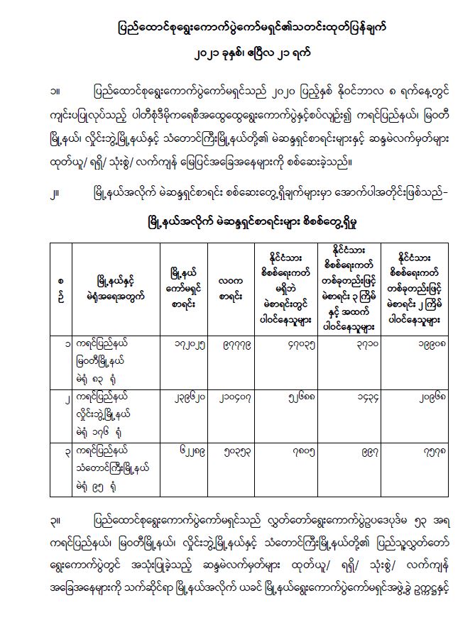 ပြည်ထောင်စုရွေးကောက်ပွဲကော်မရှင်၏သတင်းထုတ်ပြန်ချက် ၂၀၂၁ ခုနှစ်၊ ဧပြီလ ၂၁ ရက်