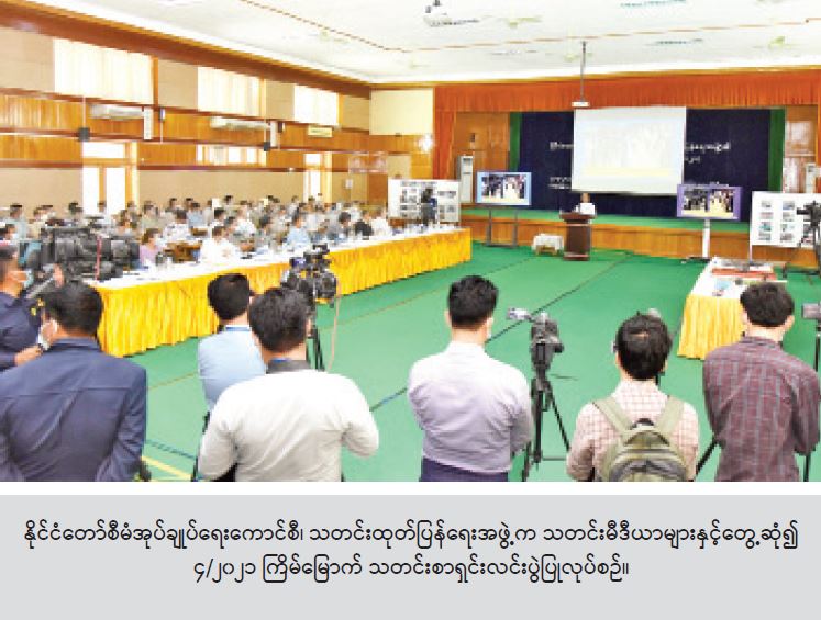 ၁၀၃။ ဆက်လက်ပြီး ဗိုလ်ချုပ်ဇော်မင်းထွန်းက ယခုနှစ်သင်္ကြန်နှင့်ပတ်သက်ပြီး သတင်းထုတ်ပြန် မှုအပိုင်းကို ပြောကြားရာ သင်္ကြန်ကာလအတွင်း ကိုဗစ်- ၁၉ ကာလဖြစ်သဖြင့် စင်ကြီးများနှင့် မဏ္ဍပ်အကြီးများအား ခွင့်ပြုမည်မဟုတ်ကြောင်း၊ သို့သော် တစ်ပိုင်တစ်နိုင် ပေ၂၀ ထက် ပိုမကျယ်သည့် မဏ္ဍပ်များနှင့် ရပ်ကွက်၊ ကျေးရွာအလိုက် ဆောင်ရွက်နိုင်ကြောင်း၊ ကိုဗစ်- ၁၉ စည်းကမ်းနှင့်အညီ ရေကစားနိုင်ရေးနှင့် ပတ်သက်ပြီး ယနေ့ သတင်းထုတ်ပြန်နိုင်မည်ဟု ထင်မိကြောင်း၊ မြန်မာ့ရိုးရာနှစ်သစ်ကူး ကာလတွင် မြန်မာပြည်သူပြည်သားအားလုံး ကိုယ်စိတ်နှစ်ဖြာ ကျန်းမာချမ်းသာ၍ ကျက်သရေ မင်္ဂလာအပေါင်းနှင့် ပြည့်စုံပါစေကြောင်း ဆုမွန်ကောင်းတောင်းရင်း နိဂုံးချုပ်အပ်ပါကြောင်း ပြောကြားသည်။ ။