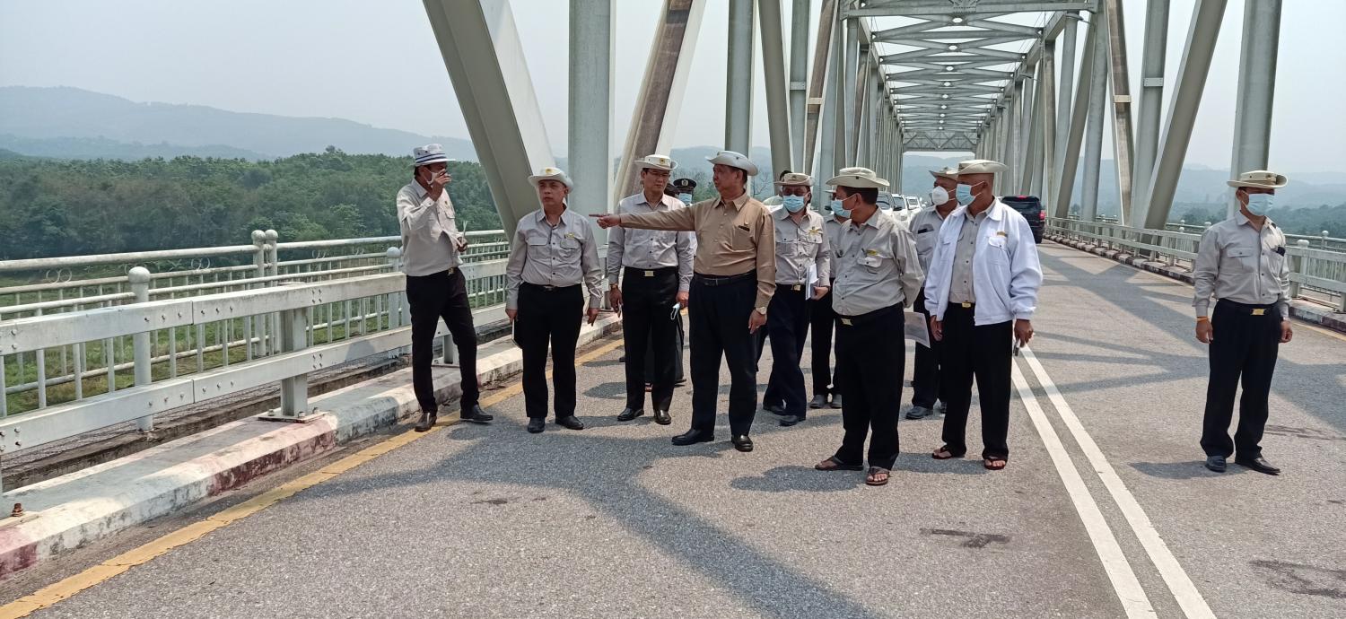 ယင်းနောက် ပြည်ထောင်စုဝန်ကြီးနှင့်အဖွဲ့သည် တံတားအရှည်(၆၉၁ ဒသမ ၆) မီတာရှိ မြန်မာ-လာအို ချစ်ကြည်ရေးတံတား မြန်မာဘက်ခြမ်းသို့ရောက်ရှိပြီး တံတားကြီးကြံ့ခိုင်မှု၊ တံတားအောက်ဘက်နှင့် တံတားအထက်ဘက် ရေလမ်းကြောင်း အခြေအနေအား တံတားပညာရှင်အဖွဲ့နှင့်အတူ စစ်ဆေးကြည့်ရှု့ပြီး တံတားကြီးရေရှည် တည်တံ့ခိုင်မြဲရေး အတွက် ထိန်းသိမ်းရေးအပိုင်း ဆောင်ရွက်မည့် လုပ်ငန်းစဉ်များနှင့် ပတ်သက်၍ တာဝန်ရှိသူ များအား မှာကြားသည်။
