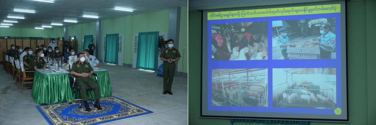 “စိုက်ပျိုးရေးနှင့်ပတ်သက်၍ အဓိကစားကုန်ဖြစ်သည့် ဆန်များအရည်အသွေး ပြည့်မီရေးအတွက် အထွက်နှုန်းကောင်းမွန်၍ အရည်အသွေးပြည့်ဝသည့် စပါးမျိုး များစိုက်ပျိုးနိုင်ရေး မျိုးကောင်းမျိုးသန့်များရရှိအောင် သုတေသနပြုစိုက်ပျိုးရန်လို ကြောင်း၊ ပြည်တွင်း ဆန်လိုအပ်ချက်ကိုဖြည့်ဆည်းနိုင်ရုံသာမက ပြည်ပနိုင်ငံများ သို့လည်း တင်ပို့နိုင်ရောင်းချနိုင်ရေးဆောင်ရွက်ရမည်ဖြစ်ကြောင်း၊ စိုက်ပျိုးရေးလုပ်ငန်းများ ဆောင်ရွက်ရာတွင် မျိုးကောင်းရန်၊ စနစ်တကျပြုပြင် ထားသည့်မြေဖြစ်ရန်၊ စိုက်နည်းစနစ်မှန်ကန်ရန်နှင့် ရေဖူလုံစွာရရှိရန်လိုကြောင်း၊ သို့မှသာ အရည်အသွေး ပြည့်မီသည့် စိုက်ပျိုးရေး ထုတ်ကုန်များရရှိမည်ဖြစ်ကြောင်း၊  တပ်မိသားစုဝင်များ သာမက ပြည်သူများအသား၊ ငါးနှင့် စိုက်ပျိုးရေးထုတ်ကုန်များအား သက်သာသော ဈေးနှုန်းများဖြင့် ဝယ်ယူစားသုံးနိုင်ရေး စဉ်ဆက်မပြတ်ဖြည့်ဆည်း ဆောင်ရွက်သွား ရန်လိုကြောင်းမှာကြားသည်။