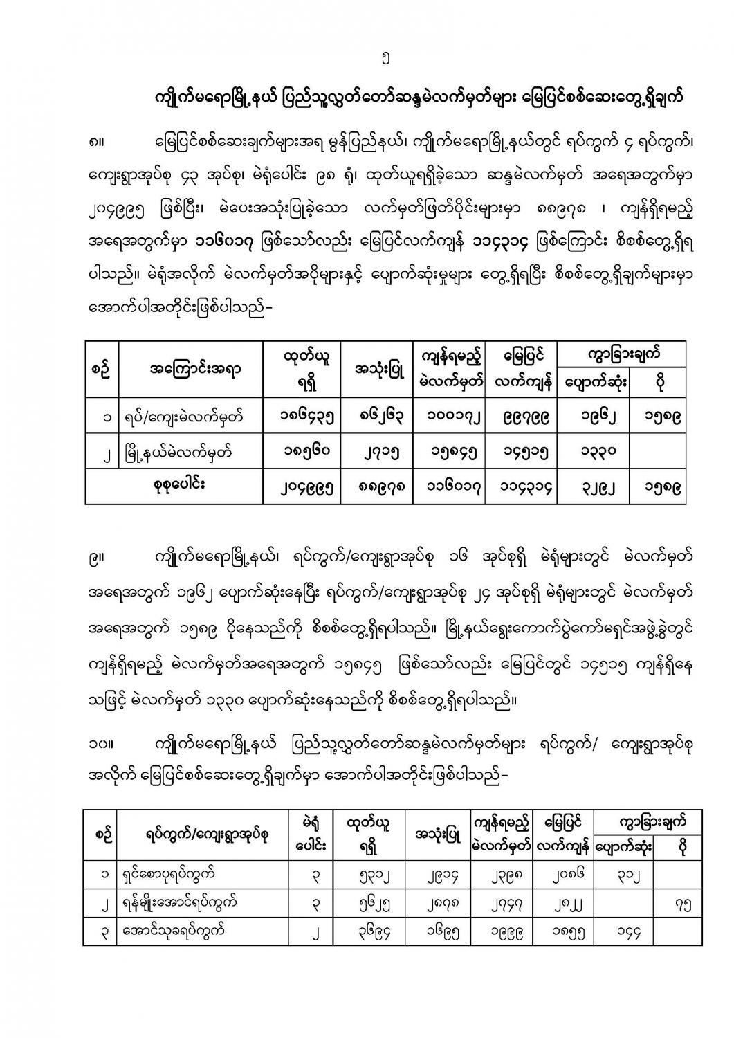 ဦးစီးဌာနနှင့် လုပ်ငန်းများ၏ ကြေညာချက်များ
