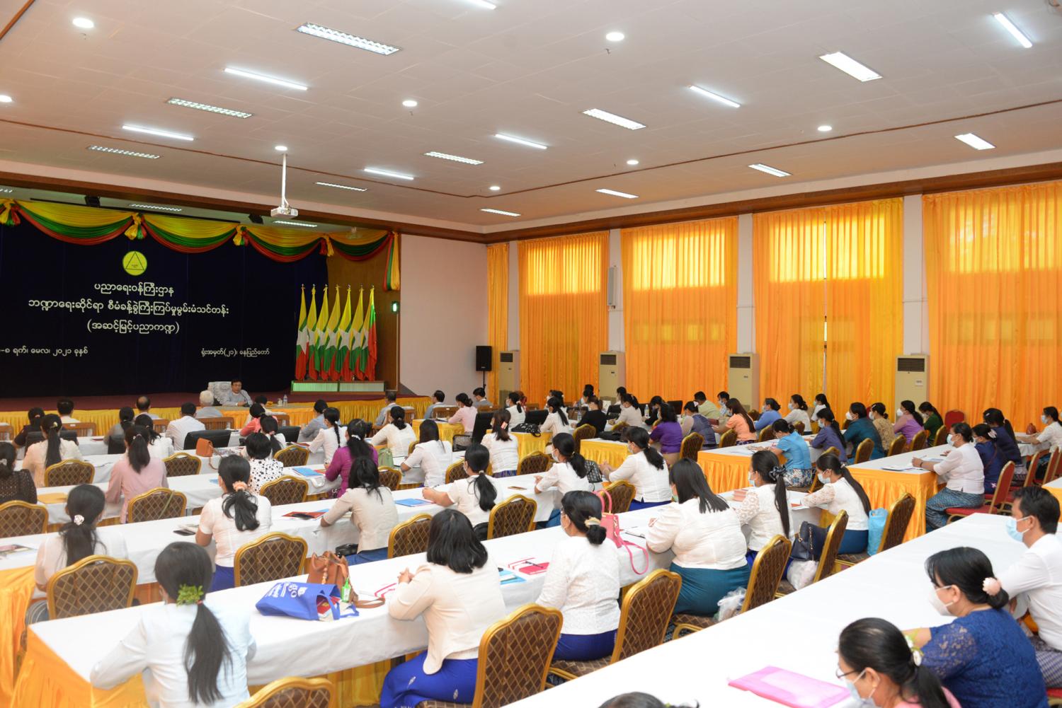 ပညာရေးဝန်ကြီးဌာန အဆင့်မြင့်ပညာကဏ္ဍ (နည်းပညာတက္ကသိုလ်နှင့် ကွန်ပျူတာ တက္ကသိုလ်များ) ဘဏ္ဍာရေးဆိုင်ရာ စီမံခန့်ခွဲကြီးကြပ်မှု မွမ်းမံသင်တန်းကို ယနေ့ နံနက် ၉ နာရီတွင် နေပြည်တော် ပညာရေးဝန်ကြီးဌာန ရုံးအမှတ်(၂၁) အစည်းအဝေးခန်းမ၌ ကျင်းပ သည်။