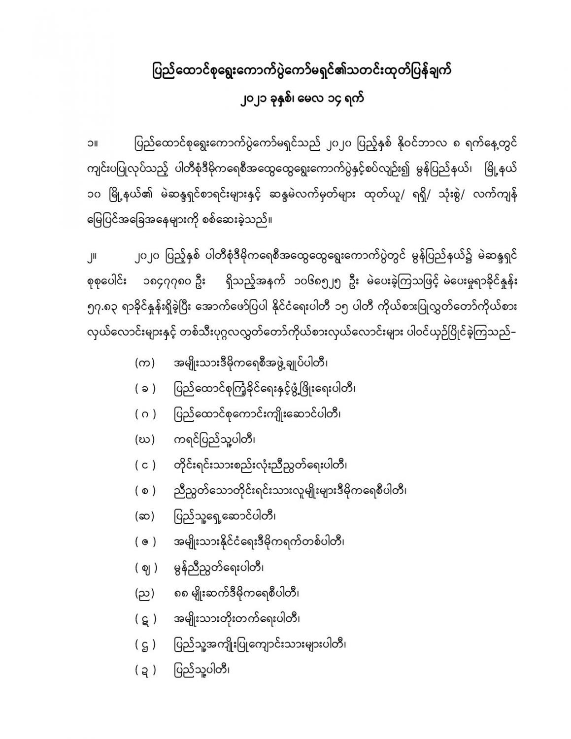 ဝန်ကြီးဌာန ကြေညာချက်များ
