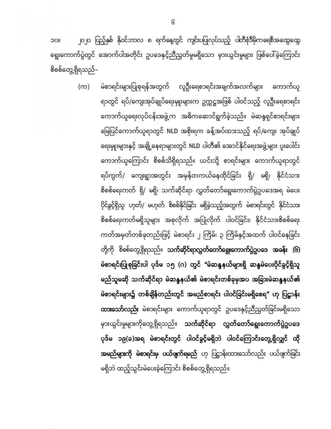 ဦးစီးဌာနနှင့် လုပ်ငန်းများ၏ ကြေညာချက်များ