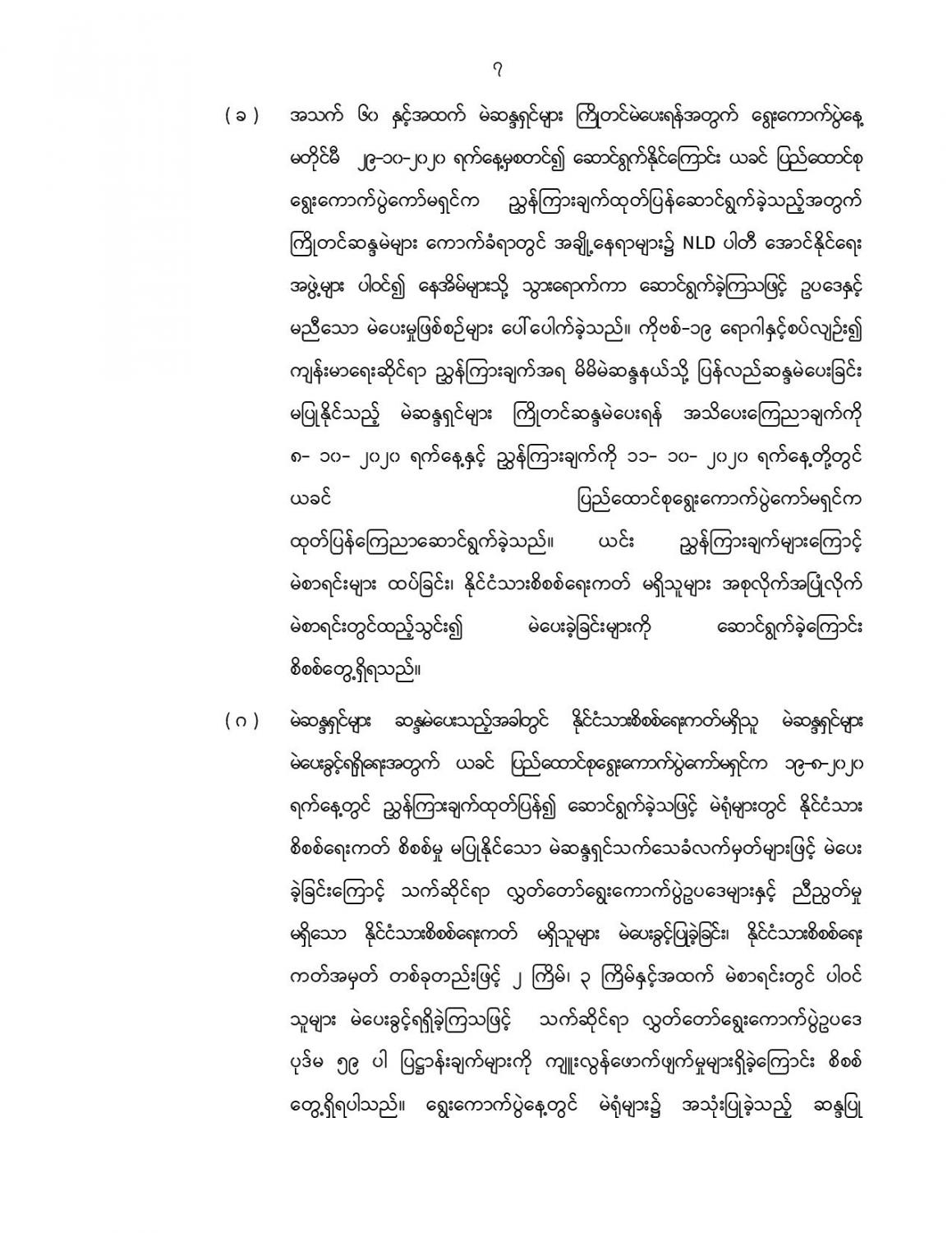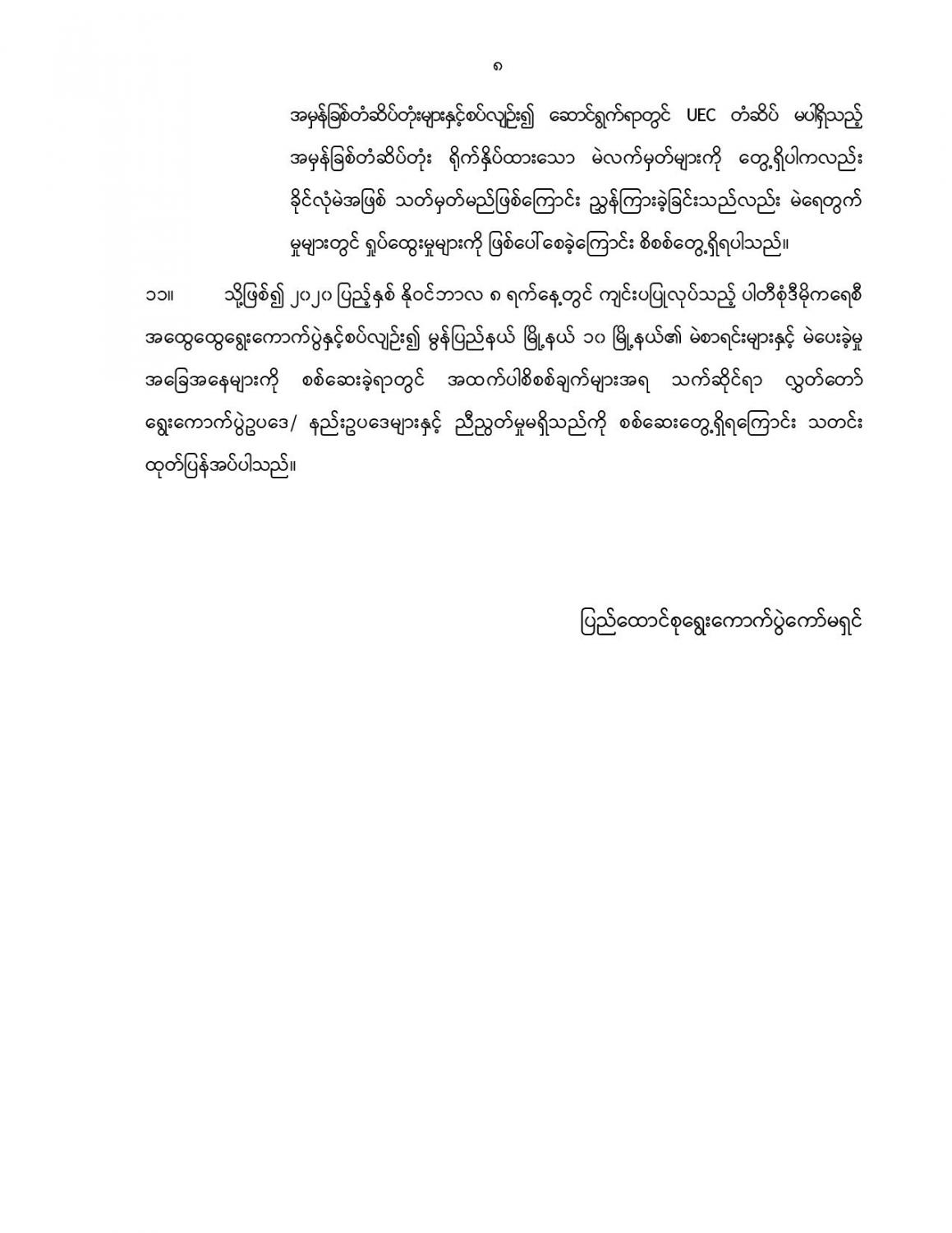 ပြည်ထောင်စုရွေးကောက်ပွဲကော်မရှင်၏သတင်းထုတ်ပြန်ချက် ၂၀၂၁ ခုနှစ်၊ မေလ ၁၄ ရက်