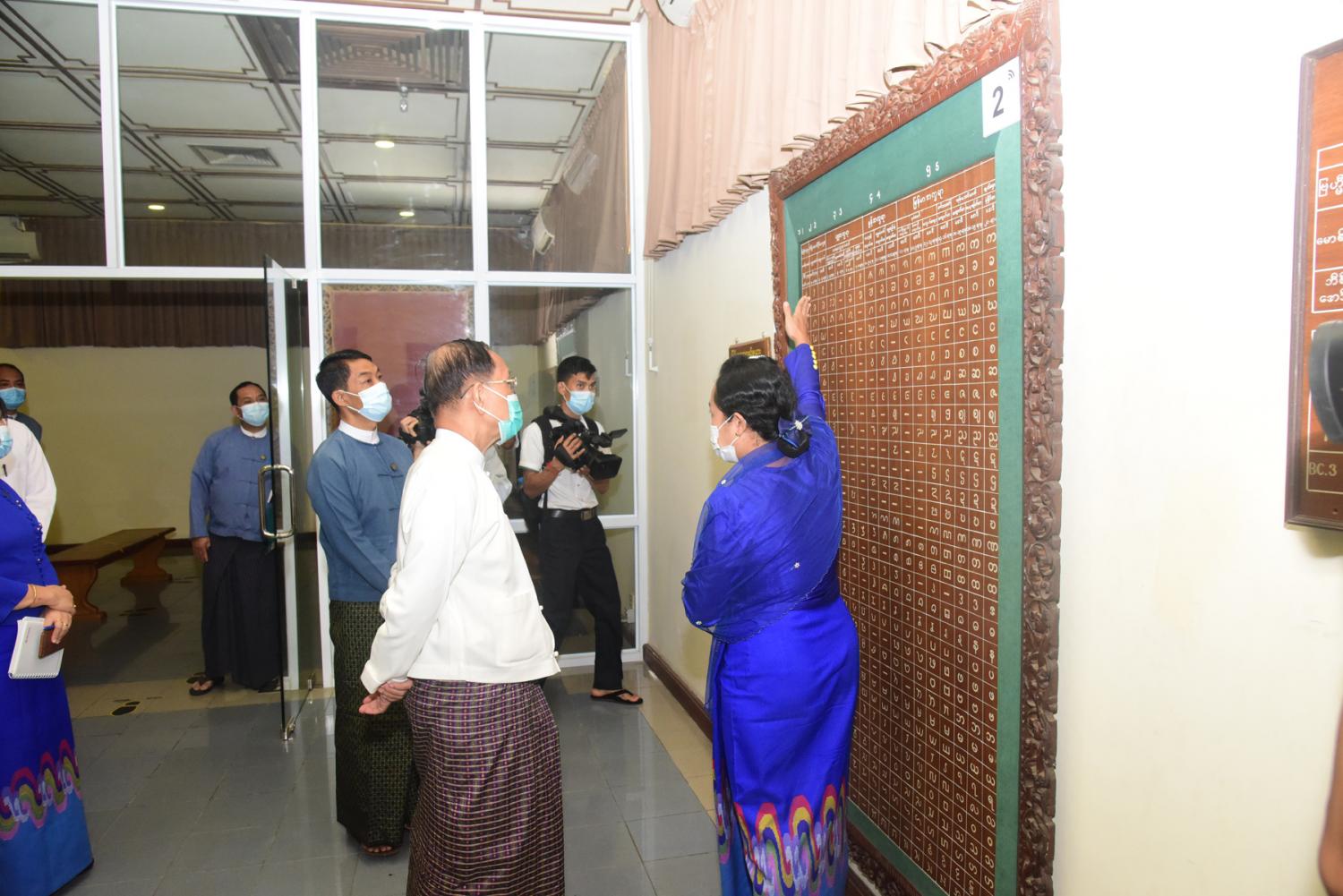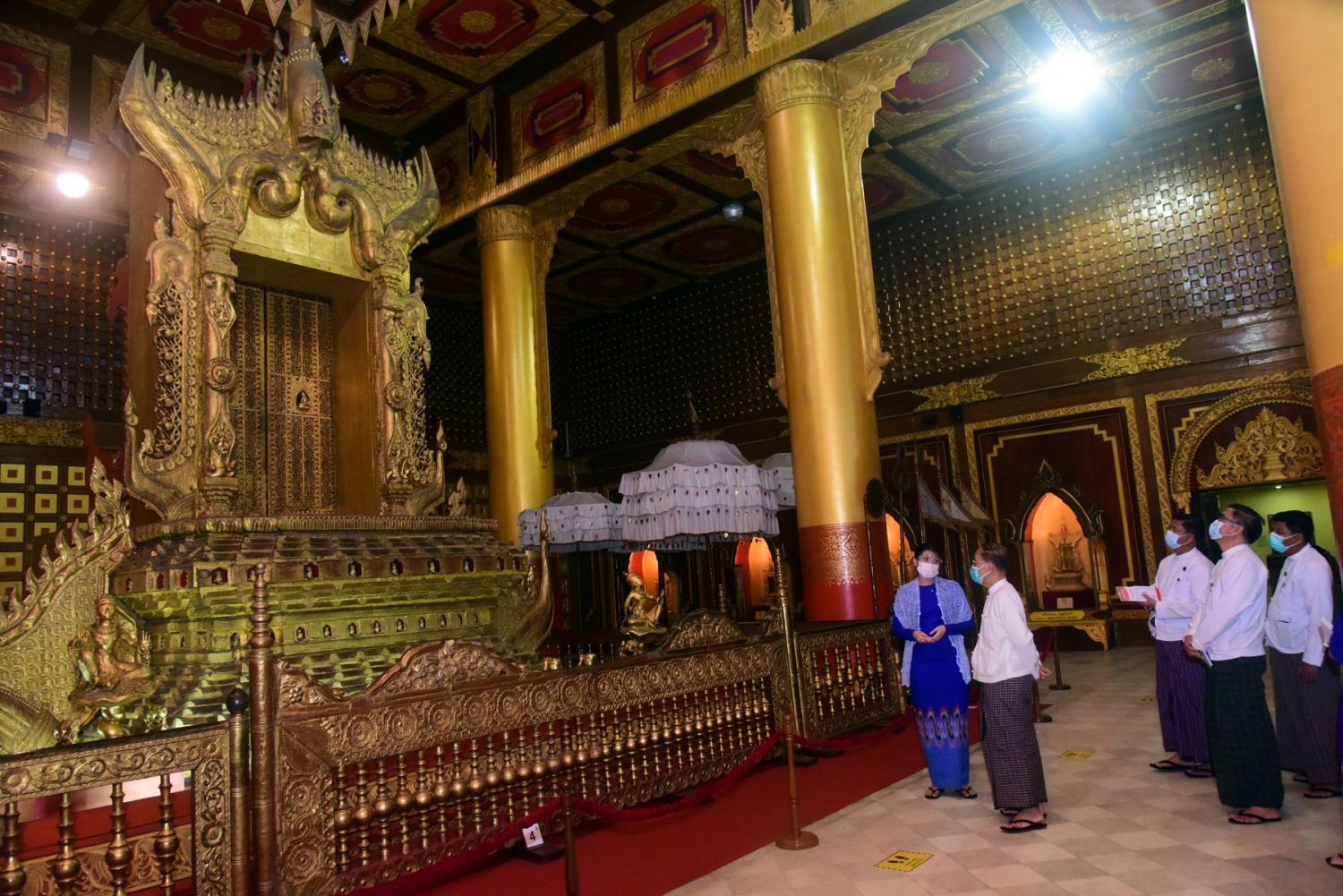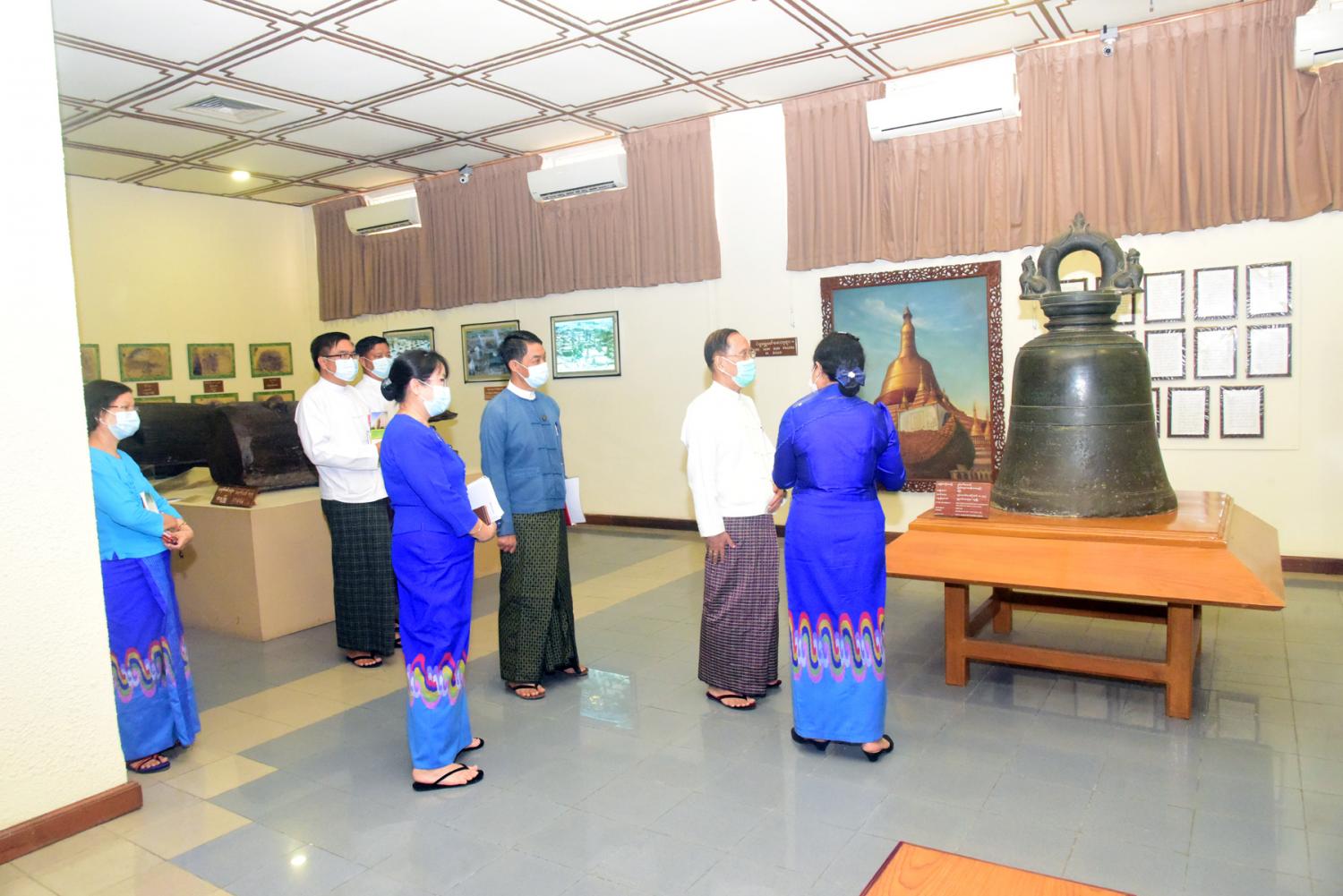 ဆက်လက်၍ ပြည်ထောင်စုဝန်ကြီးသည် ရန်ကုန်မြို့၊ ပြည်လမ်းရှိ အမျိုးသားပြတိုက် (ရန်ကုန်) အတွင်း လှည့်လည်ကြည့်ရှုစစ်ဆေးပြီး ပြတိုက်တာဝန်ခံက လိုက်လံရှင်း လင်းပြသရာ  ပြည်ထောင်စုဝန်ကြီးက လိုအပ်သည်များကို ဖြည့်စွက်ပြောကြားသည်။