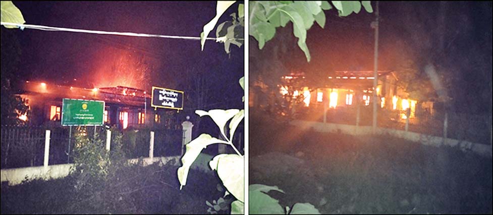 ပညာရေးမှူးရုံးအား မီးလောင်ပျက်စီးစေရန် မီးပုလင်းများဖြင့် ပစ်ပေါက်မီးရှို့ခဲသည့် မသမာသူလူတစ်စုအား ဥပဒေနှင့်အညီ အရေးယူနိုင်‌ရေး လုံခြုံရေးတပ်ဖွဲ့ဝင်များက စုံစမ်း လျက်ရှိကြောင်း သတင်းရရှိပါသည်။