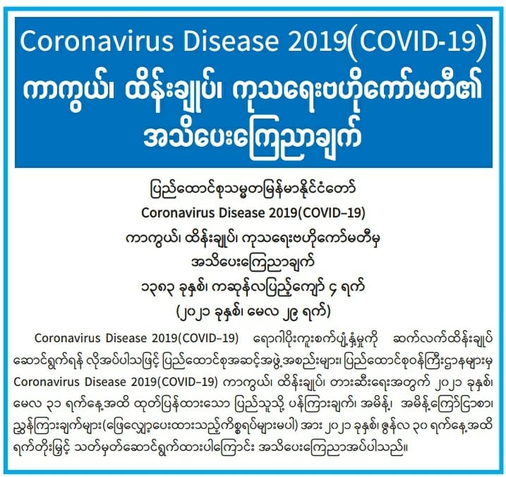 Coronavirus Disease 2019(COVID-19) ကာကွယ်၊ ထိန်းချုပ်၊ ကုသရေးဗဟိုကော်မတီ၏ အသိပေးကြေညာချက်