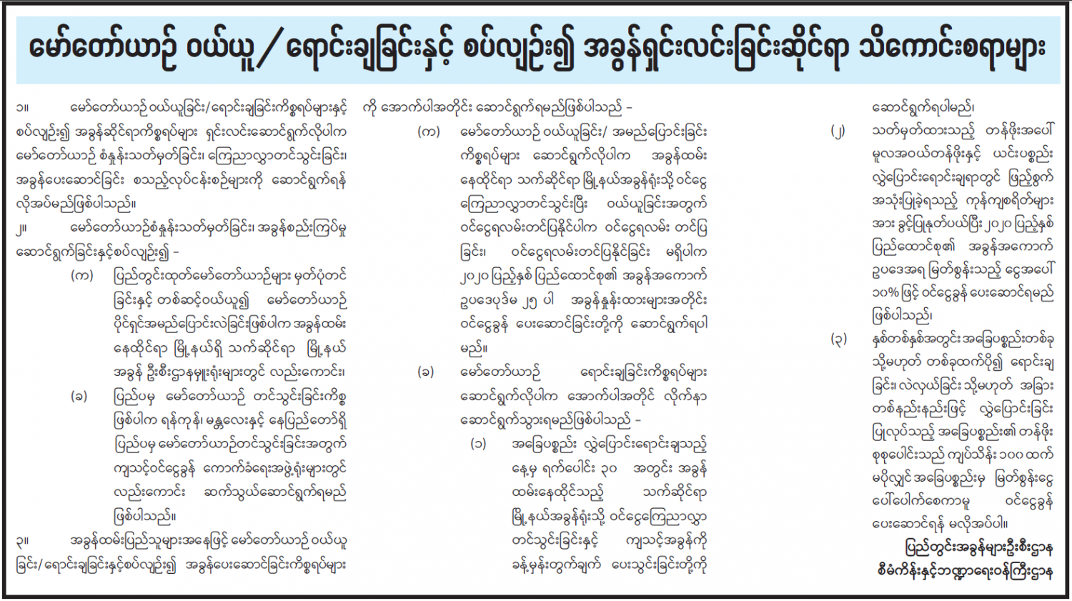 မော်တော်ယာဉ် ဝယ်ယူ/ရောင်းချခြင်းနှင့် စပ်လျဉ်း၍ အခွန်ရှင်းလင်းခြင်းဆိုင်ရာ သိကောင်းစရာများ