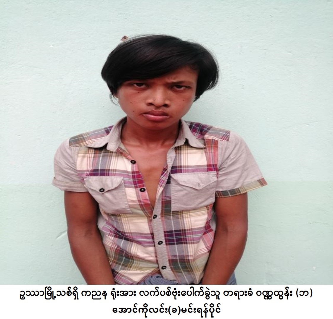 ဥဿာမြို့သစ်၊ ရပ်ကွက်ကြီး(၆)၊ သမိန်ဗရမ်းလမ်းရှိ ကညနရုံးအား လက်လုပ်ဗုံးဖြင့် ပစ်ပေါက်မှုတွင်ပါဝင်ခဲ့သူအားဖမ်းဆီးရမိ