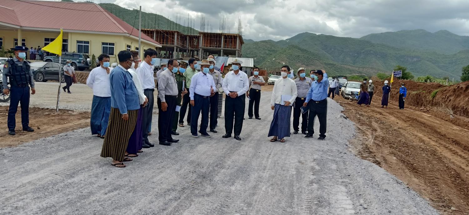 ဆက်လက်၍ ပြည်ထောင်စုဝန်ကြီး မန္တလေးတိုင်းဒေသကြီး စီမံအုပ်ချုပ်ရေးကောင်စီဥက္ကဋ္ဌနှင့်အဖွဲ့သည် ပုသိမ်ကြီး မြို့နယ်အတွင်းရှိ လျာထားလမ်းသစ် အခြေအနေတို့ကို ကြည့်ရှု စစ်ဆေး သည်။