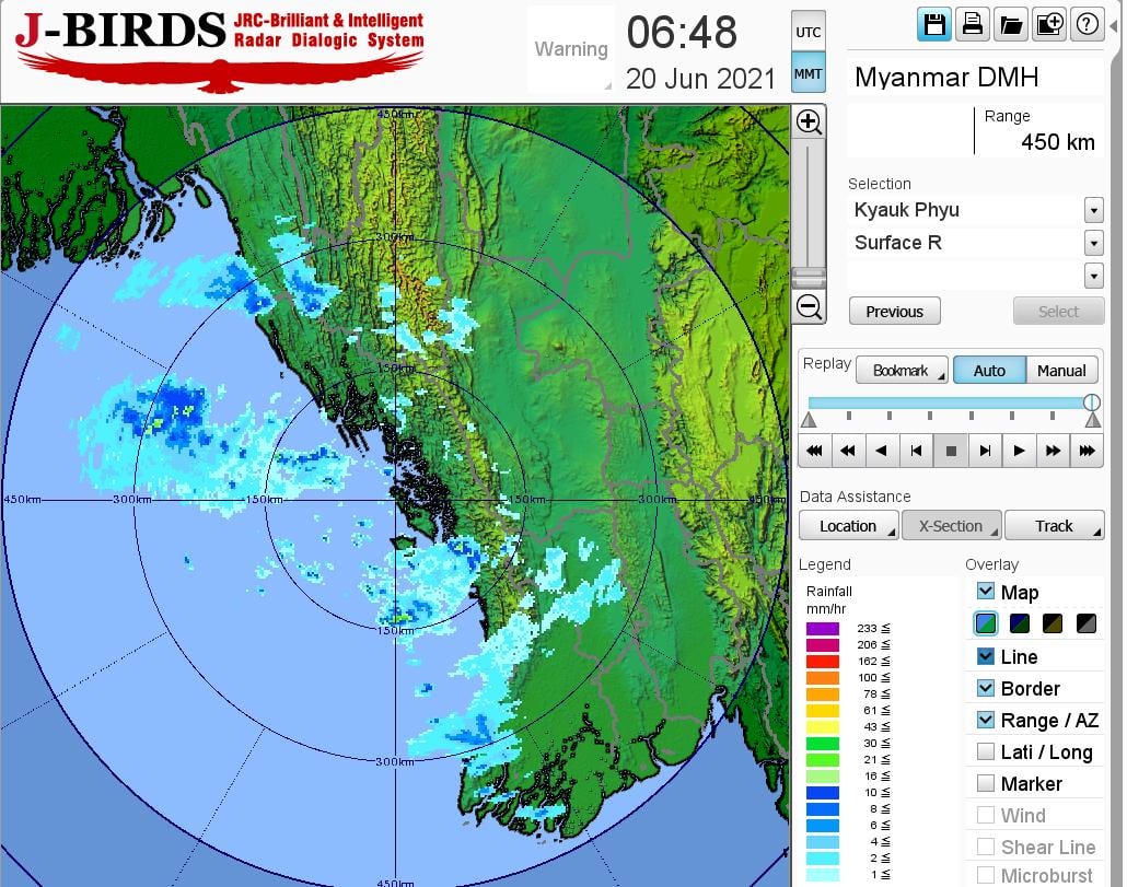 ဘင်္ဂလားပင်လယ်အော်အခြေအနေ။ကပ္ပလီပင်လယ်ပြင်နှင့် ဘင်္ဂလားပင်လယ်အော်အရှေ့တောင်ပိုင်းတို့ တွင် မုတ်သုံလေအားနည်းနေပြီး၊ ကျန်ဘင်္ဂလားပင်လယ်အော်တွင် မုတ်သုံလေ အားအသင့်အတင့်မှ အားကောင်းနေပါသည်။