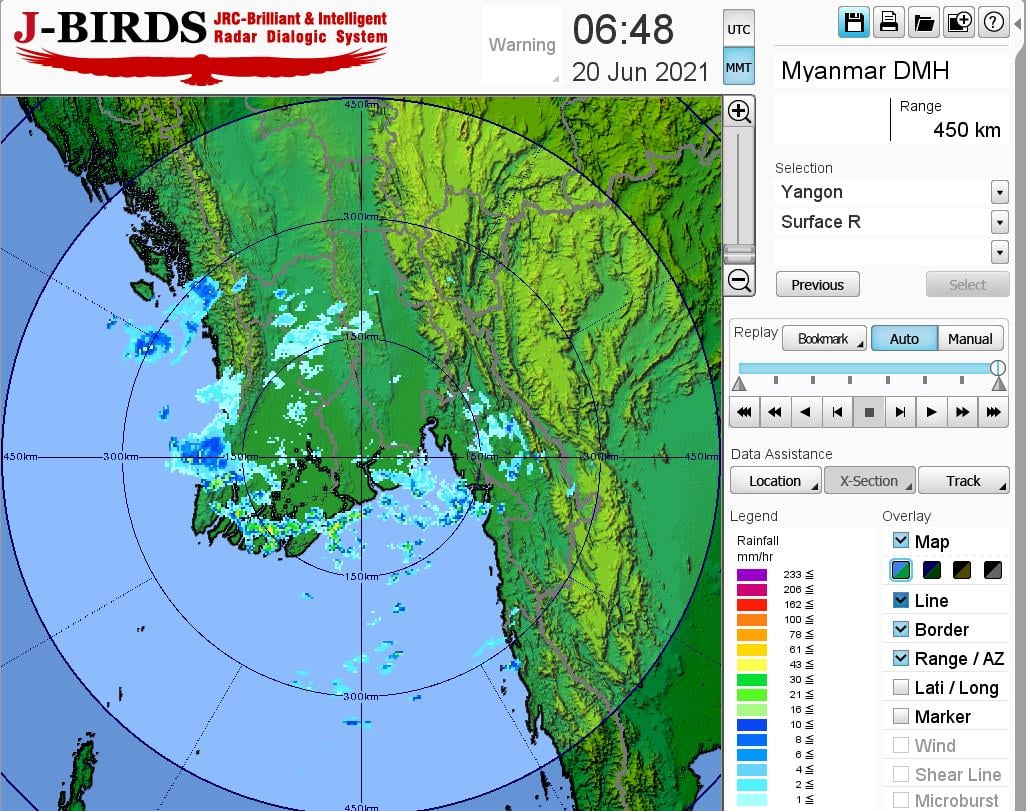 ရန်ကုန်မြို့နှင့်အနီးတစ်ဝိုက်အတွက်ယနေ့ညနေအထိခန့်မှန်းချက်။ မိုးတစ်ကြိမ်၊ နှစ်ကြိမ် ထစ်ချုန်းရွာမည်။ရွာရန်ရာနှုန်းပြည့် ဖြစ်ပါသည်။