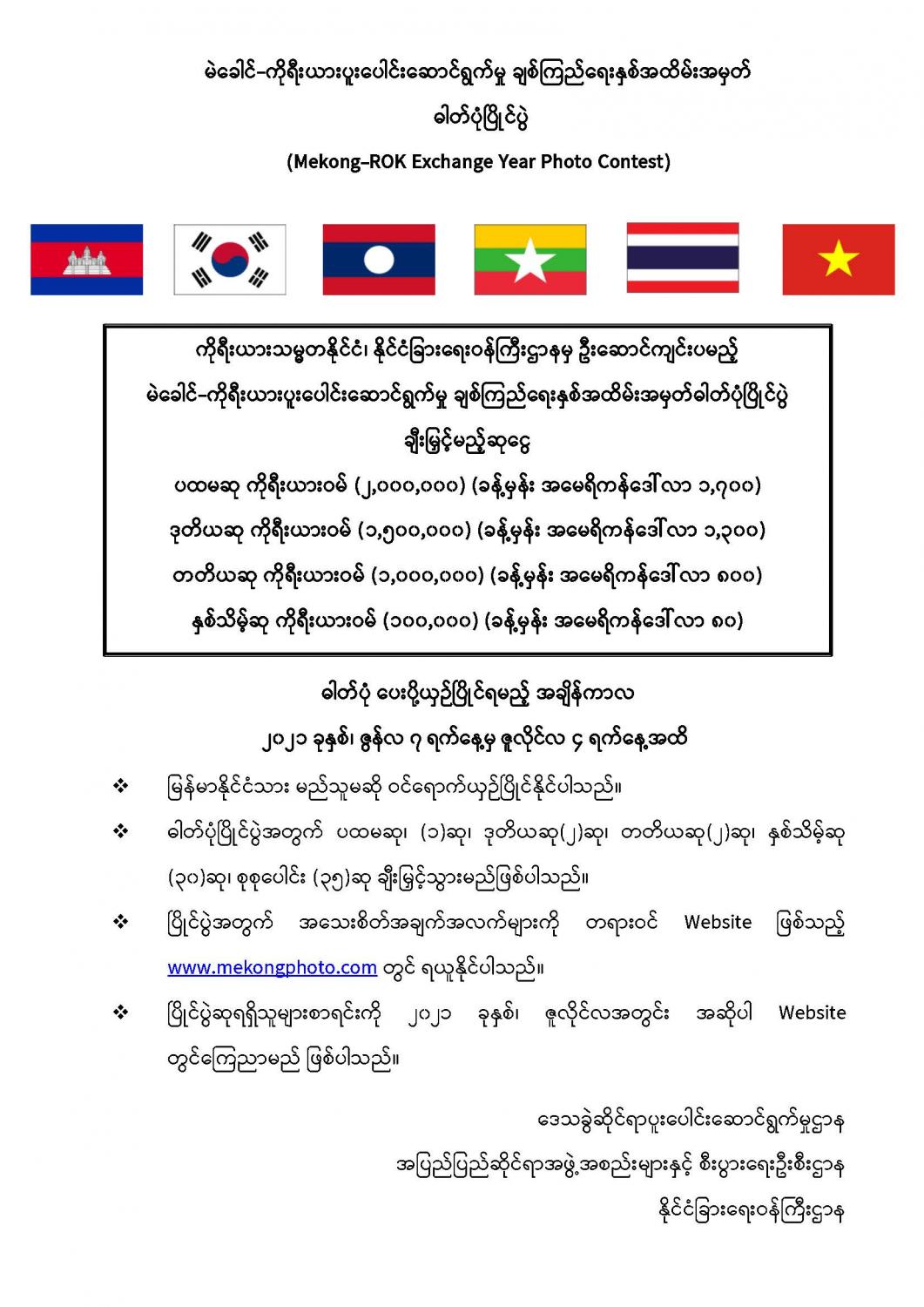 မဲခေါင်-ကိုရီးယားပူးပေါင်းဆောင်ရွက်မှု ချစ်ကြည်ရေးနှစ်အထိမ်းအမှတ် ဓါတ်ပုံပြိုင်ပွဲ