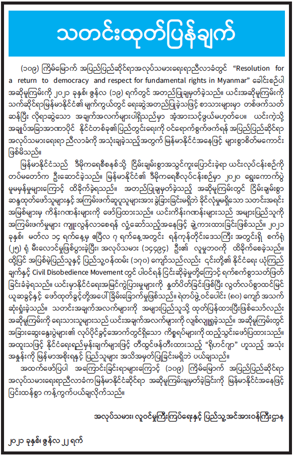 နိုင်ငံတော်အစိုးရ၏ ကြေညာချက်များ