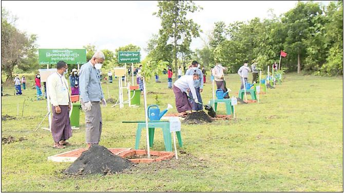 ထို့နောက် ဒုတိယဝန်ကြီး ဦးရဲတင့်၊ အမြဲတမ်းအတွင်းဝန် ဦးမျိုးမြင့်မောင်နှင့် ဌာနဆိုင်ရာ အကြီးအကဲများက ပျိုးပင်များကိုသတ်မှတ်နေရာ အသီးသီးတွင် စိုက်ပျိုးပေးကြသည်။