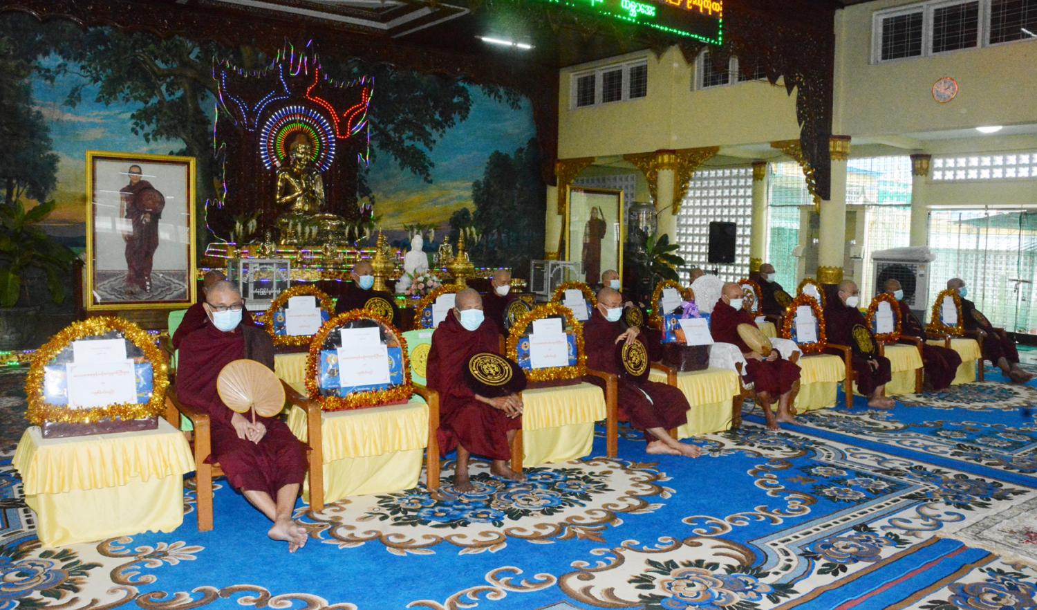 ထို့နောက် ပြည်ထောင်စုဝန်ကြီးနှင့်တာဝန်ရှိသူများက ပါမောက္ခချုပ်ဆရာတော်နှင့် သင်ကြား/စီမံ ဆရာတော်များထံ လှူဖွယ်ဝတ္ထုပစ္စည်းများဆက်ကပ်လှူဒါန်း၍ ပါမောက္ခ ချုပ်ဆရာတော် ဒေါက်တာ ဘဒ္ဒန္တကုမာရ(အဂ္ဂမဟာပဏ္ဍိတ၊ အဂ္ဂမဟာသဒ္ဓမ္မ ဇောတိကဓဇ)က အနုမောဒနာနှင့် ရေစက်သွန်း တရားဟောကြားချီးမြှင့်တော်မူခဲ့ကြောင်း သိရသည်။