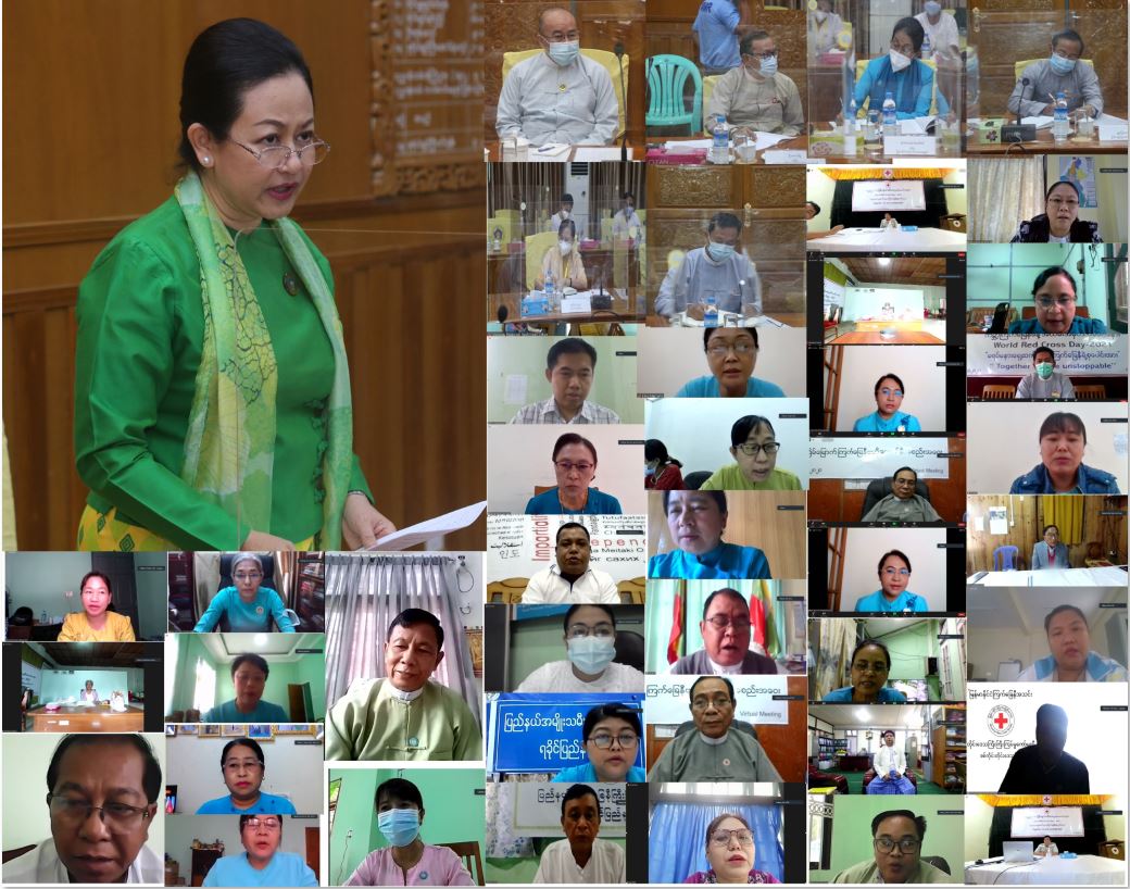 ဆက်လက်၍ မြန်မာနိုင်ငံ အမျိုးသမီးရေးရာ အဖွဲ့ချုပ် ဥက္ကဋ္ဌ နှင့် မြန်မာနိုင်ငံ ကြက်ခြေနီအသင်း အလုပ်အမှုဆောင်တို့က တိုင်းဒေသကြီး/ ပြည်နယ်များအလိုက် လုပ်ငန်း ဆောင်ရွက်မှုများ၊ သင်တန်းများ ဆောင်ရွက်သွားမည်အခြေအနေ၊ လူမှုဝန်ထမ်းဦးစီးဌာန၊ ညွှန်ကြားရေးမှူးချုပ်နှင့် တာဝန်ရှိသူများက လက်ရှိ အကောင်အထည်ဖော် ဆောင်ရွက်နေသော NCMSU ၏ လုပ်ငန်းစဉ်များနှင့် လုပ်ငန်း အဖွဲ့များ ဖွဲ့စည်း ဆောင်ရွက်မှု အခြေအနေကို ရှင်းလင်းတင်ပြကြရာ အစည်းအဝေး တက်ရောက်လာကြသူများက ဝိုင်းဝန်းဆွေးနွေးကြသည်။