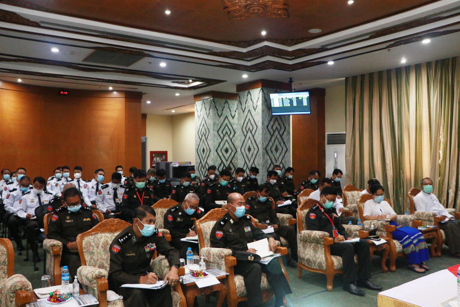 တွေ့ဆုံစဉ် ပြည်ထောင်စုဝန်ကြီးက မိမိတို့ဌာနဝန်ထမ်းများသည် နိုင်ငံတော်လုံခြုံ ရေးဆိုင်ရာ ကိစ္စရပ်များကို ဆက်စပ်ဆောင်ရွက်ရပြီး ပြည်သူကို ဝန်ဆောင်မှုပေးရသူများ ဖြစ်ပါကြောင်း၊ ကိုဗစ်-၁၉ ကန့်သတ်ချက်များ ဖြေလျော့သည့်အခါ လေကြောင်းလိုင်းများ ခွင့်ပြုပြီး ပြည်တွင်း/ပြည်ပခရီးသွားများ ပြန်လည်များပြား လာနိုင်သည့်အတွက် လူဝင်မှုကြီးကြပ်ရေး လုပ်ငန်းများ စနစ်တကျ လုပ်ဆောင်နိုင်ရေး ကြိုတင်ပြင်ဆင်ထားကြရန် လိုအပ်ပါကြောင်း၊ ယခုကာလတွင် လုပ်ငန်းဆိုင်ရာ စက်ကိရိယာများ ပြည့်စုံရေးနှင့် ကြံ့ခိုင်ကောင်းမွန်ရေး စစ်ဆေး ဆောင်ရွက်ကာ ဝန်ထမ်းများအနေဖြင့် လုပ်ငန်းဆောင်ရွက်မှု ကျွမ်းကျင်ပိုင်နိုင်ရေးအတွက် အစဉ်လေ့ကျင့်ဆောင်ရွက်နေကြရန် လိုအပ်ပါကြောင်း၊ ယခုအခါ ကိုဗစ်-၁၉ ကူးစက်မြန်ရောဂါ ကာကွယ်တားဆီးနိုင်ရေးအတွက် ကျန်းမာရေး ဆိုင်ရာ ညွှန်ကြားချက်များကို တိကျစွာ လိုက်နာ ဆောင်ရွက်နိုင်ရေး တာဝန်ရှိသူ အဆင့်ဆင့်က ကြပ်မတ်ဆောင်ရွက်ကြရန်လိုကြောင်း ပြောကြားသည်။
