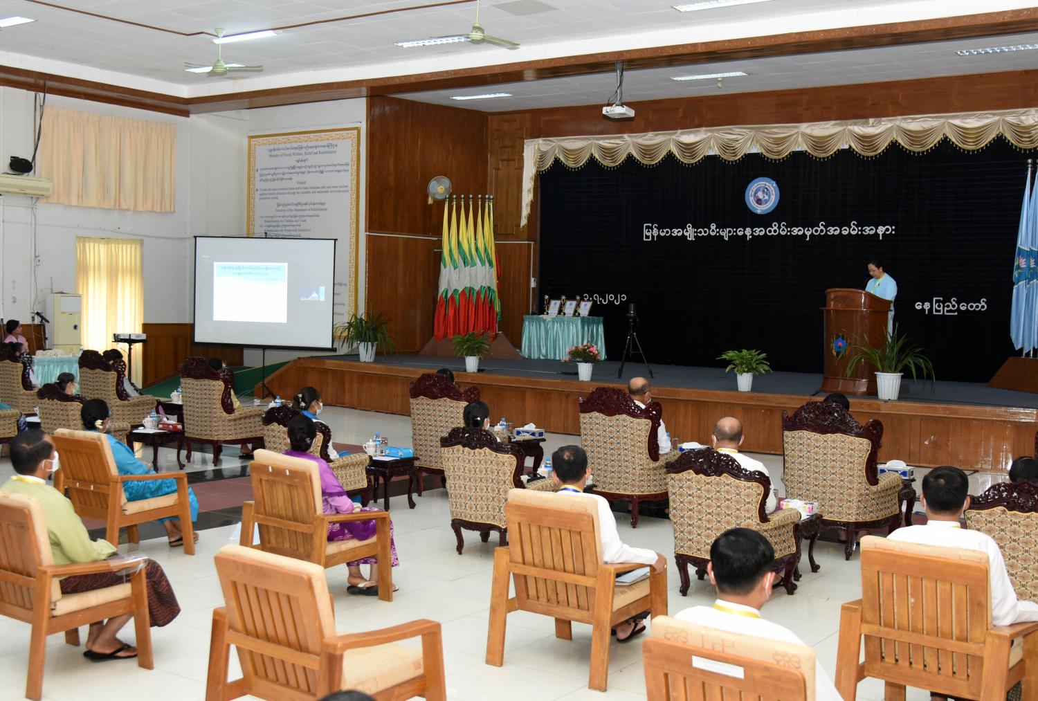 ၂၀၂၁ ခုနှစ် မြန်မာအမျိုးသမီးများနေ့ အထိမ်းအမှတ်အခမ်းအနားကို  ယနေ့နံနက် ၁၀ နာရီတွင် နေပြည်တော်ရှိ လူမှုဝန်ထမ်း၊ ကယ်ဆယ်ရေးနှင့် ပြန်လည်နေရာချထားရေးဝန်ကြီးဌာန အစည်းအဝေးခန်းမ၌ COVID-19 ရောဂါ ကာကွယ်၊ ထိန်းချုပ်ရေးဆိုင်ရာ ညွှန်ကြားချက်များနှင့် အညီ ကျင်းပသည်။
