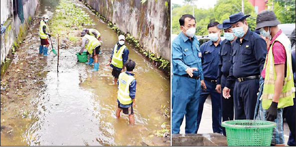 ရန်ကုန်မြို့တော်ဝန် ဦးဗိုလ်ဌေး မြို့တော်စိမ်းလန်းစိုပြည်ရေး၊ ရေစီးရေလာကောင်းမွန်ရေးလုပ်ငန်းများနှင့် ကိုဗစ်စင်တာ ကြည့်ရှုစစ်ဆေး