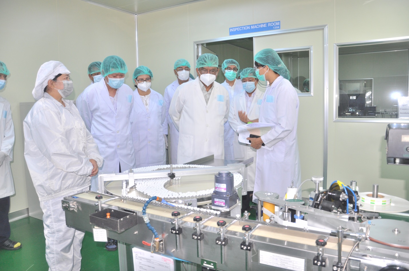 ယနေ့ နံနက်ပိုင်းတွင် ပြည်ထောင်စုဝန်ကြီးသည် လှည်းကူးမြို့နယ်ရှိ အသည်းရောင်အသားဝါ ဘီပိုးကာကွယ်ဆေး ထုတ်လုပ်သည့်စက်ရုံသို့ ရောက်ရှိပြီး စက်ရုံတာဝန်ခံက စက်ရုံဆိုင်ရာ အချက်အလက်များကို ရှင်းလင်းတင်ပြရာ ပြည်ထောင်စုဝန်ကြီးက ဆေးဝါးများကို ကောင်းမွန် သော ထုတ်လုပ်မှုနည်းစဉ်များအတိုင်း တိတိကျကျ လိုက်နာဆောင်ရွက်ရမည်ဖြစ် ကြောင်း၊ ပြည်သူများအတွက် မရှိမဖြစ်လိုအပ်လျက်ရှိသော ကာကွယ်ဆေးများ ထုတ်လုပ်နိုင်ရေး ကြိုတင် ပြင်ဆင်ထားကြစေလိုကြောင်း မှာကြားပြီး အသည်းရောင်အသားဝါ ဘီပိုးကာကွယ်ဆေး ထုတ်လုပ် သည့် နည်းစဉ်အဆင့်ဆင့်တို့ကို လှည့်လည်ကြည့်ရှုစစ်ဆေးကာ ဝန်ထမ်းများ၏ တင်ပြချက်များအပေါ် ပေါင်းစပ်ညှိနှိုင်း ဆောင်ရွက်ပေးခဲ့သည်။