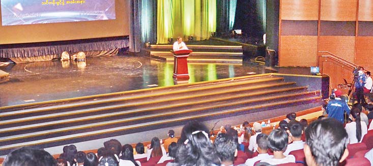 ပြန်ကြားရေးဝန်ကြီးဌာန၊ မြန်မာ့အသံနှင့်ရုပ်မြင်သံကြားတွင် ဝန်ထမ်းသစ်များ ကြိုဆိုပွဲနှင့် စွမ်းရည်မြှင့်တင်ရေး သင်တန်းဖွင့်ပွဲကို ယနေ့နံနက်ပိုင်းက နေပြည်တော်၊ တပ်ကုန်းရှိ မြန်မာ့အသံနှင့် ရုပ်မြင်သံကြား Auditorium ခန်းမ၌ ကျင်းပသည်။