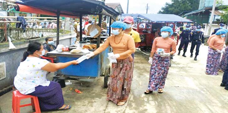 အလားတူ ဧရာဝတီတိုင်းဒေသကြီး၊ ပုသိမ်ခရိုင်၊ ပုသိမ်မြို့၊ ကျုံပျော်မြို့၊ သားပေါင်းမြို့၊ ဟင်္သာတခရိုင်၊ ဟင်္သာတမြို့၊ မအူပင်ခရိုင်၊ မအူပင်မြို့နှင့် ပန်းတနော် မြို့များရှိ လူစည်ကားရာ ဘုရားစေတီများ၊ ဈေးများ၊ လမ်းများ၌ ဒေသခံပြည်သူများအား အနောက်တောင်တိုင်း စစ်ဌာနချုပ်၊ တပ်နယ်အသီးသီးမှ နယ်မြေခံ တပ်မတော်သားများ၊ ဌာနဆိုင်ရာ ဝန်ထမ်းများနှင့် ကျန်းမာရေးဝန်ထမ်းများက Mask ၂၀၁၀၀ ခုကို ဒေသခံပြည်သူများ၏ လက်ဝယ်အရောက် အခမဲ့သွားရောက်ပေးဝေ လှူဒါန်းခဲ့ကြကြောင်း သတင်းရရှိသည်။
