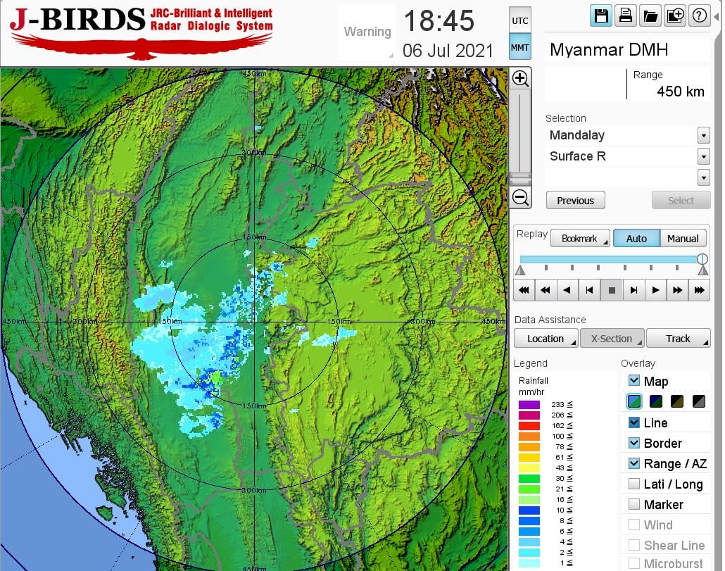 မန္တလေးမြို့နှင့် အနီးတစ်ဝိုက်အတွက် မနက်ဖြန်မွန်းတည့်ချိန်အထိ ခန့်မှန်းချက်။မိုးတစ်ကြိမ်၊ နှစ်ကြိမ်ထစ်ချုန်းရွာမည်။ ရွာရန်ရာနှုန်းပြည့် ဖြစ်ပါသည်။