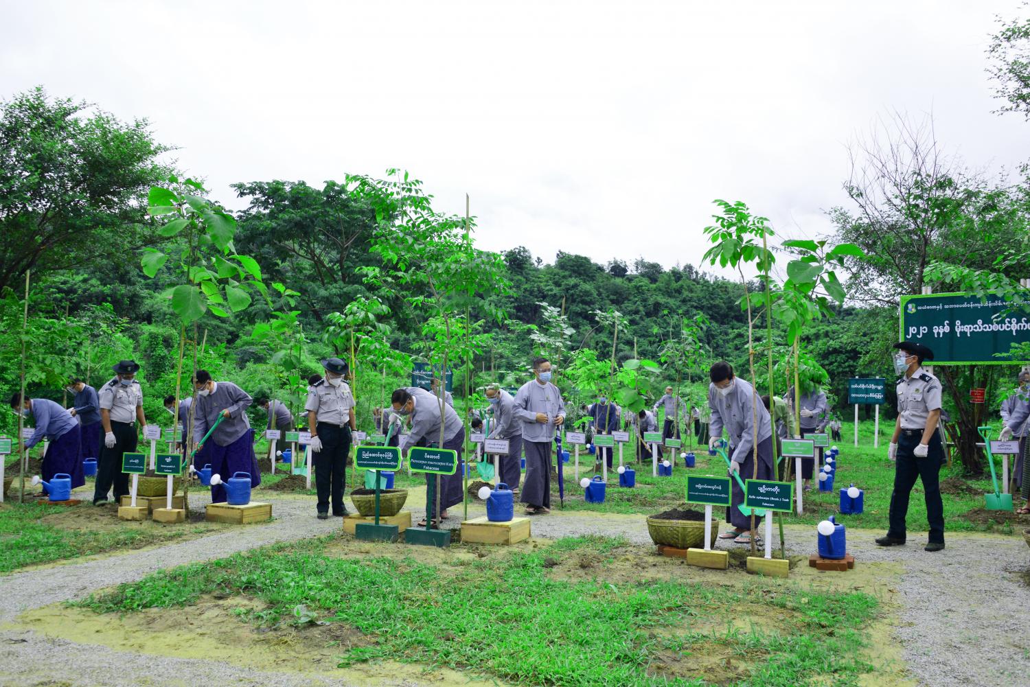 သစ်ပင်စိုက်ပျိုးပွဲတွင် သယံဇာတနှင့် သဘာဝပတ်ဝန်းကျင်ထိန်းသိမ်းရေးဝန်ကြီးဌာန၊ ပြည်ထောင်စုဝန်ကြီး ဦးခင်မောင်ရီက ပိတောက်ပင်ကို စိုက်ပျိုးပေးပြီး ဒုတိယဝန်ကြီးက ကျွန်းပင်၊ အမြဲတမ်းအတွင်းဝန်က ပျဉ်းကတိုးပင်တို့ကို စိုက်ပျိုးကာ ညွှန်ကြားရေး မှူးချုပ်များ၊ ဦးဆောင်ညွှန်ကြားရေးမှူးများ၊ ပါမောက္ခချုပ်၊ ဒုတိယအမြဲတမ်း အတွင်းဝန် များ၊ ဒုတိယညွှန်ကြားရေးမှူးချုပ်များနှင့်  အရာထမ်း၊ အမှုထမ်းများက စိုက်ကွက် ဧရိယာ()ဧက အတွင်းရှိ သတ်မှတ်နေရာ အသီးသီးတွင် အဖိုးတန်သစ်မျိုးများဖြစ်သော ပိတောက်၊ မဟော် ဂနီနှင့် အရိပ်ရလေကာ ကြီး/မြန် သစ်မျိုးများဖြစ်သည့် ယင်းမာ၊ မန်ဂျန်ရှား၊ ပန်းမယ်ဇလီ စသည့် သစ်မျိုးများအပါအဝင် အပင်ပေါင်း (၁၀၀၀) စိုက်ပျိုးကြသည်။