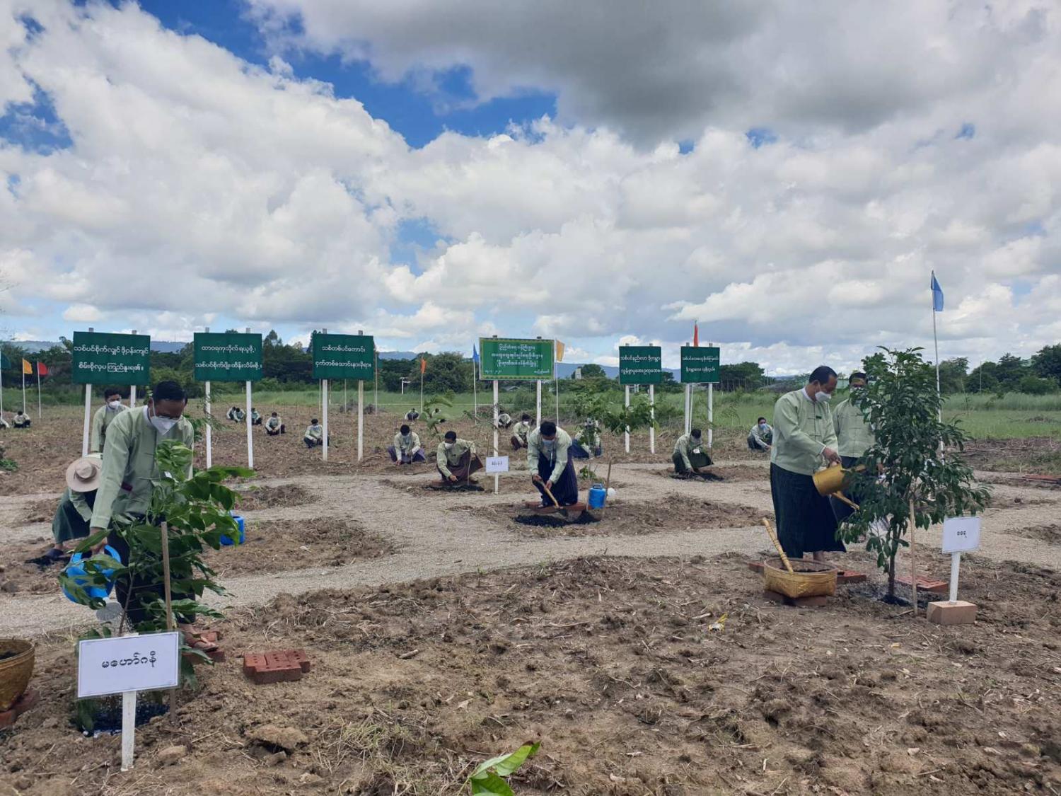 ယနေ့ပြုလုပ်သော မိုးရာသီသစ်ပင်စိုက်ပျိုးပွဲတွင် ခရေ၊ ပိတောက်၊ မဟော်ဂနီ၊ မယ်ဇလီ၊ စိန်ပန်းနီ၊ အောရီရှားနှင့် ယူကလစ် စုစုပေါင်းအပင် (၄၀၀) စိုက်ပျိုးပေးခဲ့ကြောင်း သိရသည်။