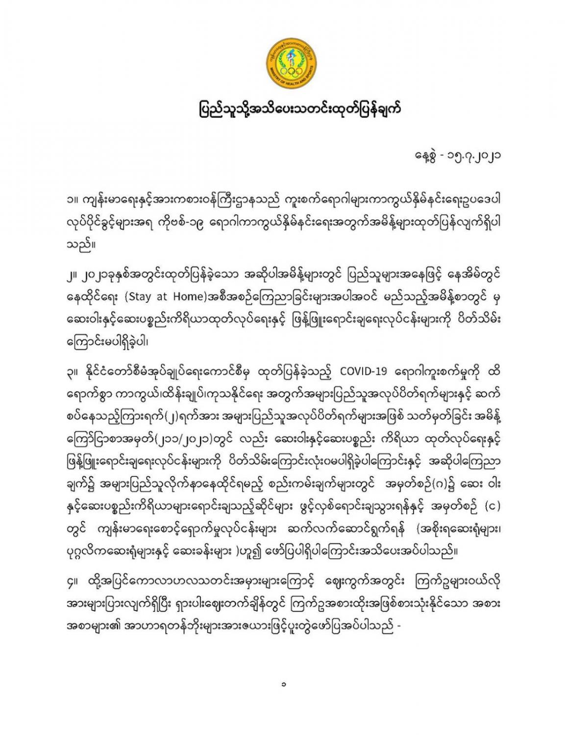 ဝန်ကြီးဌာန ကြေညာချက်များ